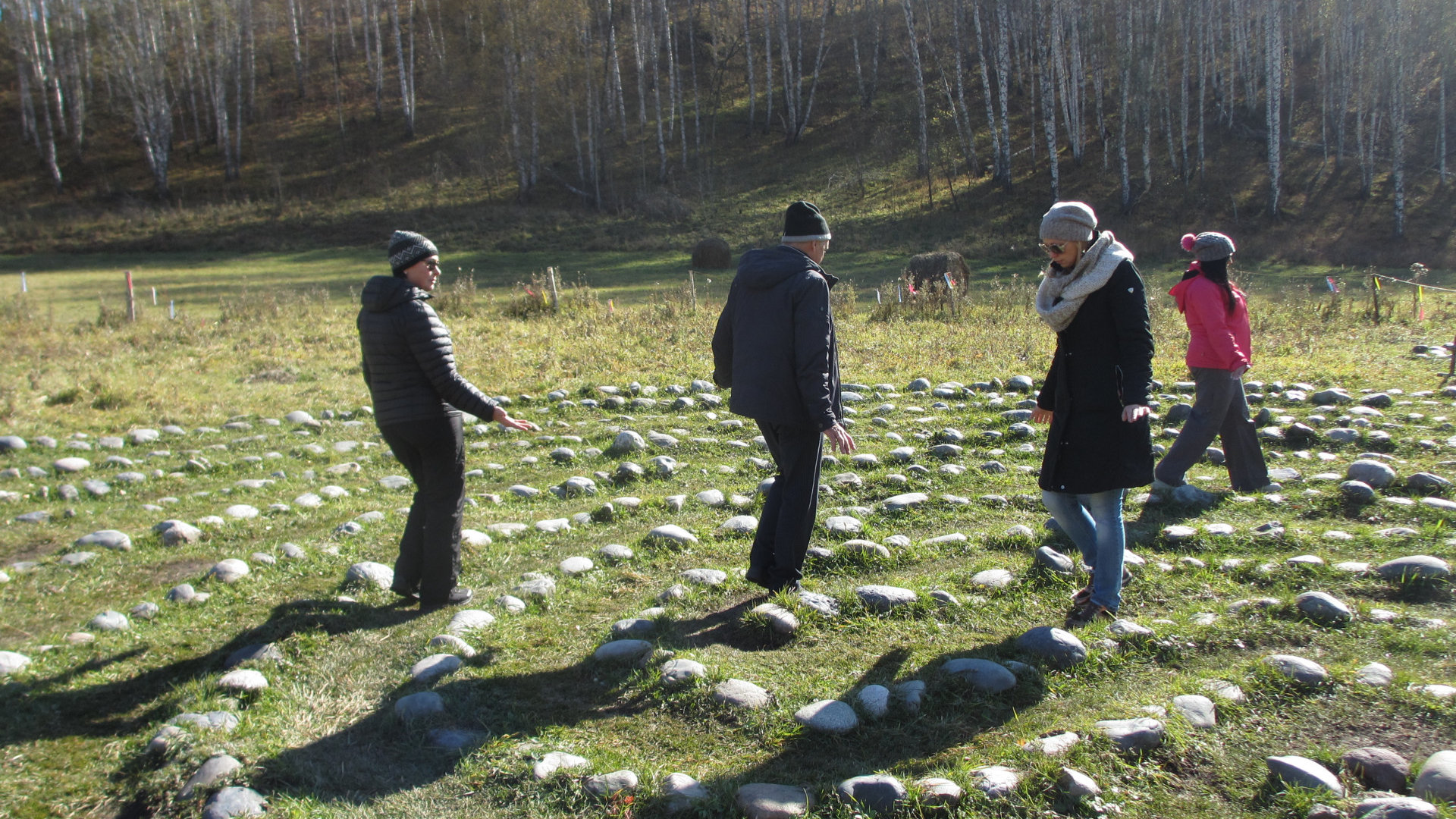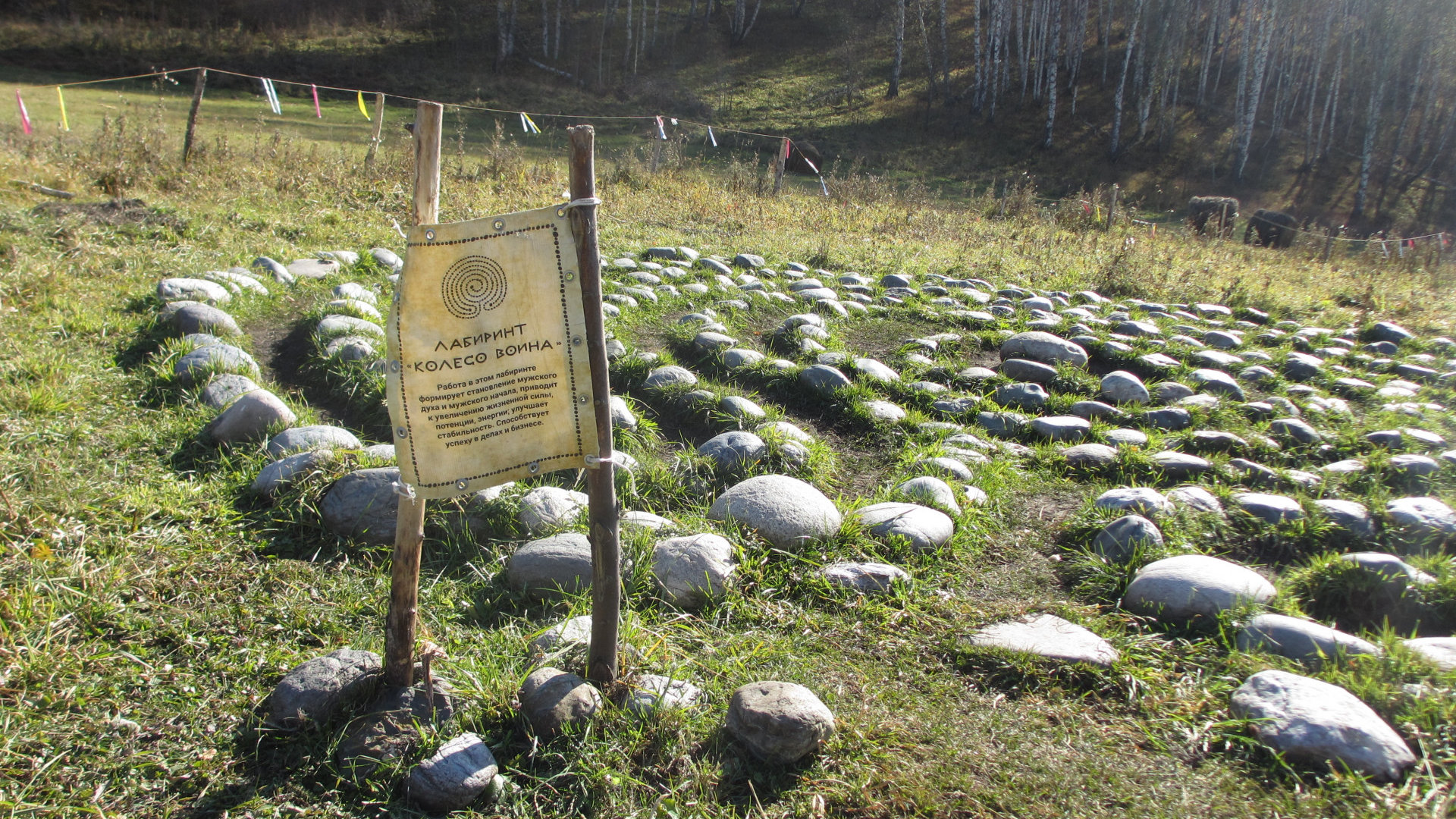 Каменные лабиринты — современное создание человеческих рук, поэтому в его особую силу я изначально не верила и скептически отнеслась к рассказам нашего гида. Находится Парк лабиринтов в так называемом Мархенином логу, урочище Усть-Уба. Это на левом берегу реки Катунь, если соберетесь когда-нибудь здесь побывать.