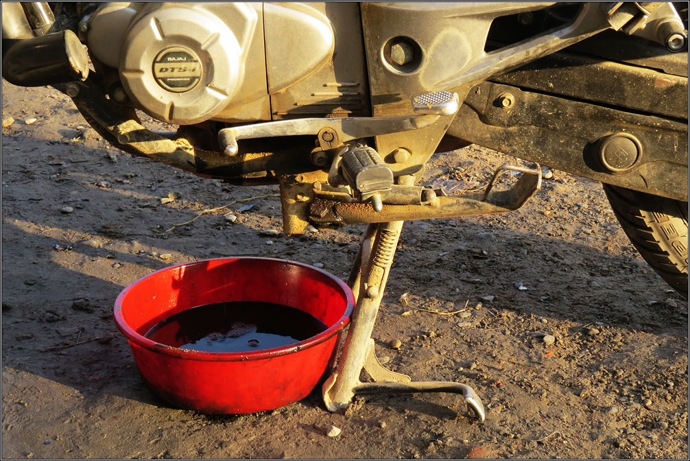 Так что сегодня с утра у меня был ТО для мотобайка, совмещенный с видом на Гималаи. Драндулет мне, конечно, достался тот еще — масло древнее, тросик газа слабый, коробка люфтит, нейтраль не ловится. Впрочем, прошлогодний Royal Enfield в Гоа тоже был гордой птицей: пока не пнешь — не полетит. Ничего, приеду в Тай, там мотобайки куда приличнее :)