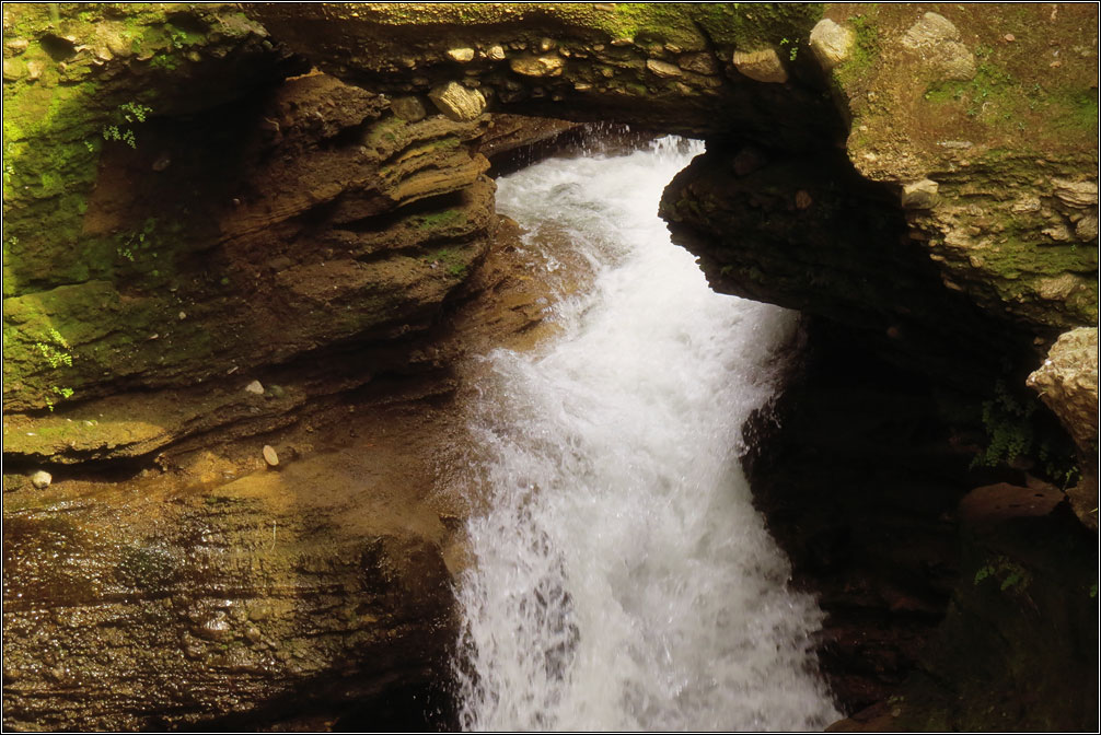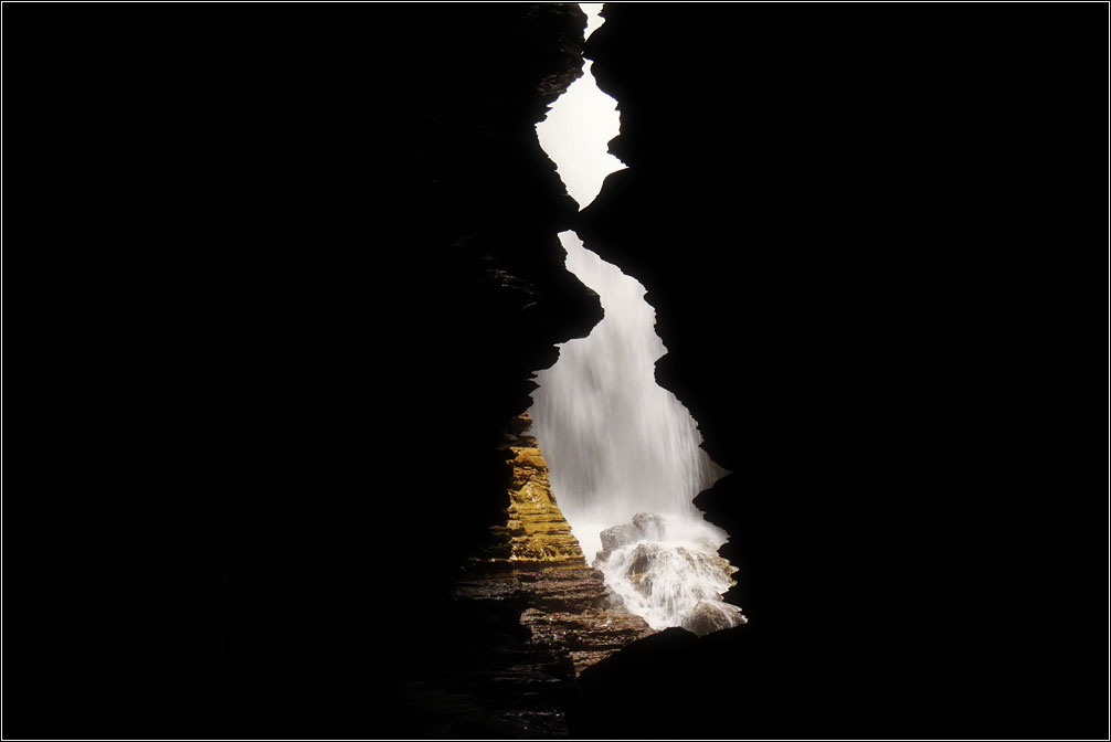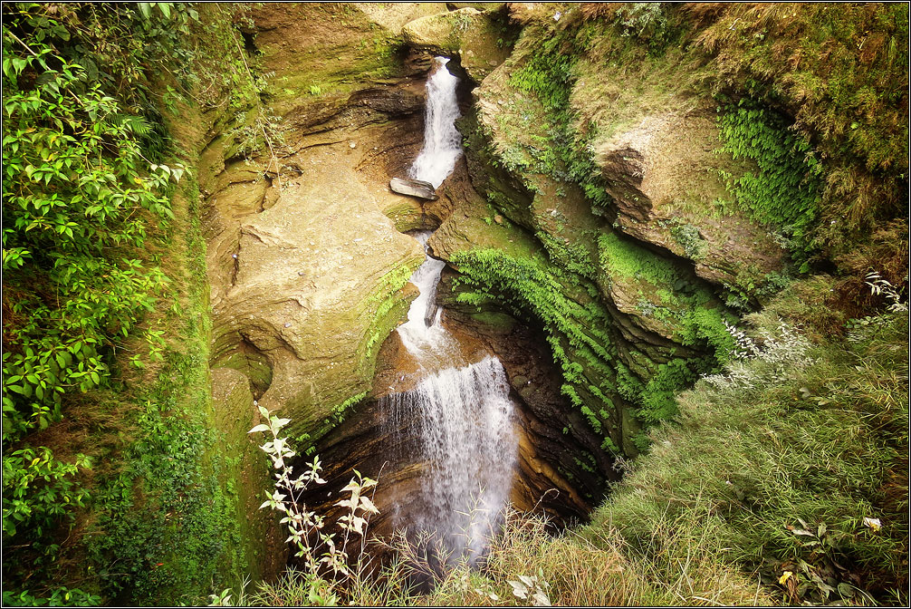 Наконец попадаю в большой зал с мостиками и лампочками, прохожу до конца, и вдруг — опа! Узкая щель в скале, а за ней — Devi's fall. То есть, в принципе, это — одна и та же достопримечательность, но хитрые непальцы огородили их заборами по отдельности и поставили две кассы: за проход к Провалу, и за проход к Провалу с другой стороны.