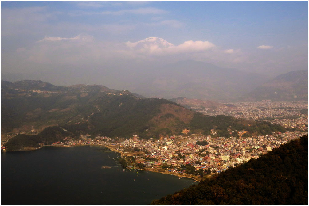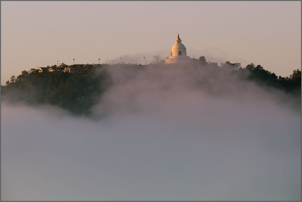 World Stupa — это такая местная достопримечательность, буддистский храм на вершине холма над городом. В ясную погоду оттуда видно и озеро Фева, и город Покхара, и смотровую вышку деревни Сарангкот, и вершины хребта Аннапурны.