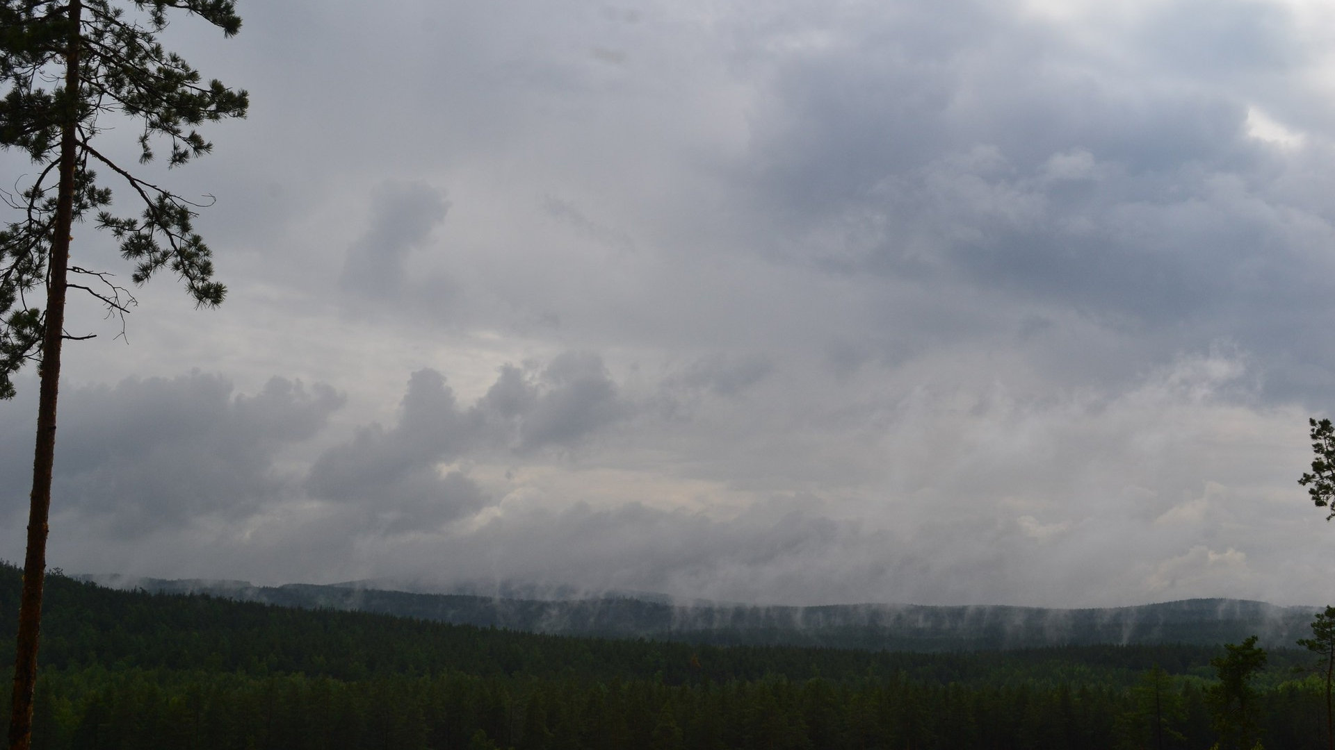 Дождик почти закончился. Началось красивейшее явление. По всему лесу шло испарение, густой туман плавно поедал наш лагерь. Пышму накрыло, Екатеринбург тоже. Черные-Черные тучи стояли над городами, и где-то за ними виднелся Мордор. Всё это вселяло в нас печальку и грусть, ветер был в нашу сторону, а значит скоро и у нас небо нахмурится. Погода плакала, плакала моросящим дождиком, а потом и вовсе зарыдала ливнем, и никто не нашел в себе сил успокоить эту капризную даму. ПА-БАМ! Неожиданный просвет мы обнаружили в небе, потом и тучи начали расходиться, показывая нам всю красоту голубого неба. По такому случаю хотели совершить прогулку по скалам. Рано обрадовались... Облачность-то переменная!