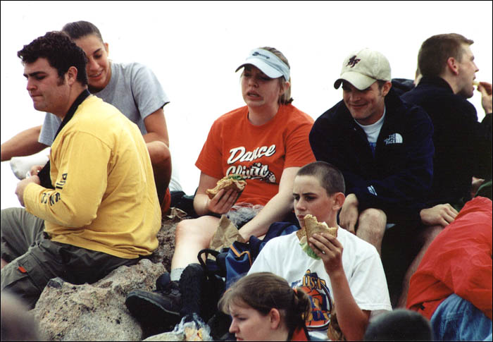 Обходим их (налегке-то), идем дальше. Выходим на вершину. Сидим, философствуем, наслаждаемся видами, фотографируем, кормим бурундуков орешками. Появляется «группа скаутов». Ну, думаем, сейчас они тут нам покажут что-нибудь, типа установки палаток на стену, страховки на подтяжках и разведения костров с одной зажигалки. Садятся они на соседнюю площадку, снимают свои офигенные рюкзаки, открывают...