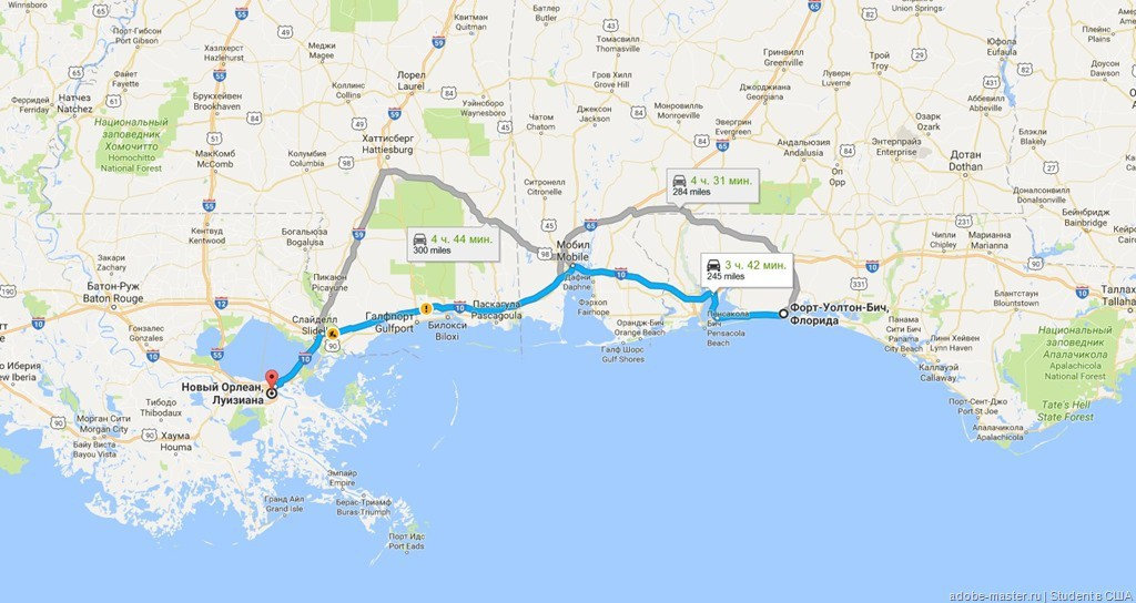 Путь наш был не так близок, учитывая наш опыт езды по американским дорогам, в две стороны около 800 км и с учетом того, что мы имели всего сутки в нашем распоряжении. Что хорошо, так это то, что наша поездка затрагивала сразу 4 штата: Флорида, Алабама, Миссисипи и Луизиана, где собственно и находится Новый Орлеан.