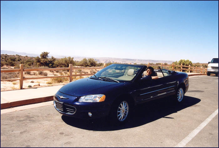 Пытался Лас-Вегас нас задержать, чуял, что не все деньги мы в казино просадили. Не вышло – только белый кабриолет себе на память оставил, нам синенький отдал :)