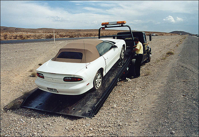 Но сзади уже слышу сирену – полицейский джип, хайвей патруль. Видать, кто-то из встречных вызвал. Сначала, ясное дело, проверка документов, выяснение обстоятельств. А потом – когда они поняли, что и с законом мы в ладах, и в медицине не нуждаемся – вызвали нам эвакуатор, и около часа, пока ждали, стояли с нами и трепались за жизнь. Про президентов, рыбалку, детей, машины, фотоаппараты.