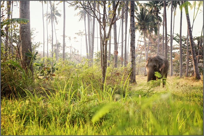 На острове есть несколько местных деревенек. В одной, на западе острова, содержат слонов, в другой — на востоке — делают каучук. По всему острову стоят ровными рядами посадки каучуковых пальм с висящими на них чашечками для сбора смолы. А пасущегося слона можно просто неожиданно встретить в джунглях и удивиться :)