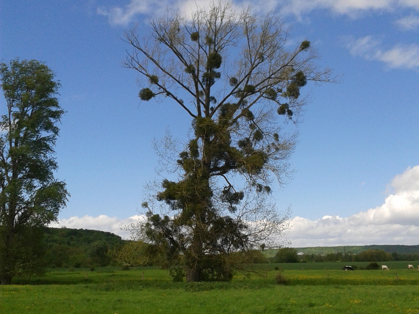 В настоящем фахверковом доме, построенном по техникеколомбаж (французский вариант фахверка), с деревянными балками: всё на месте, как и положено стилю. Одинокий дом на отшибе небольшой малоэтажной деревни, где на улицах никого и не встретишь, вот как раз, только если в поле лошадей и коров. А вокруг дома, вокруг деревни была невероятная зелень. Ну, что я раньше травы и деревьев зеленых не видела, что ли? Таких, нет. Кажется, что все зеленые краски сконцентрировались в этой стране. Именно, стране. Это отдельная страна в регионе Нормандия государства Франция части света Европа на планете Земля. Словно Алиса, я оказалась в чудесной стране: забавные дома с деревянными перекрестами, странные деревья с кустами-гнездами на ветвях, откормленные пятнистые коровы из рекламы, белые изящные лошади с длинными ресницами, гуси-лебеди в озере и сочно-густо-зеленые леса, пересекающиеся с облаками на горизонте.