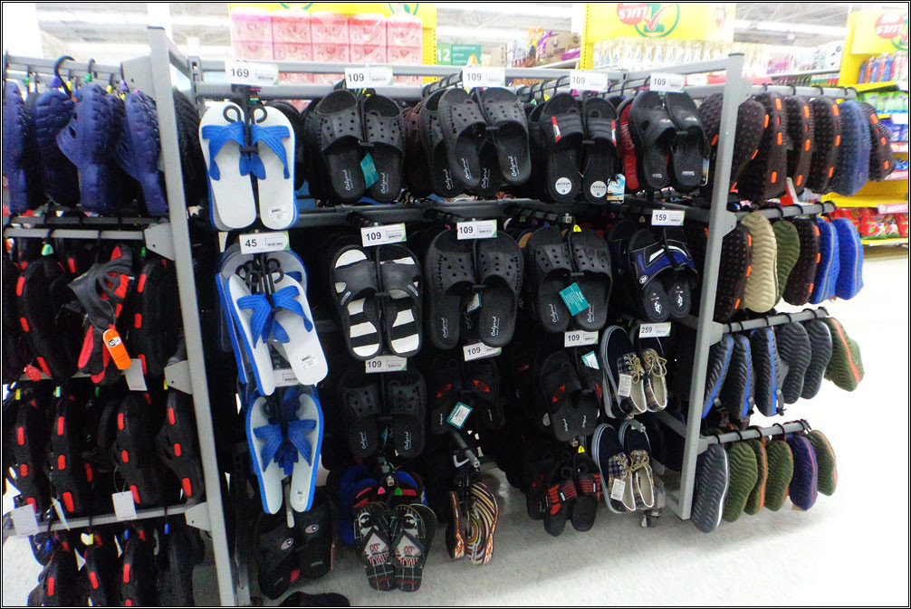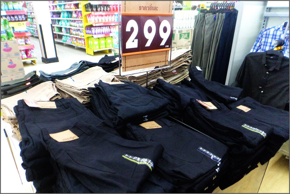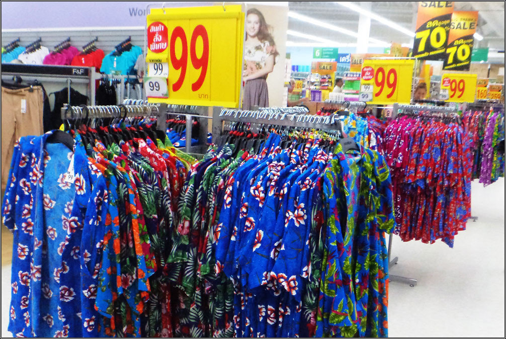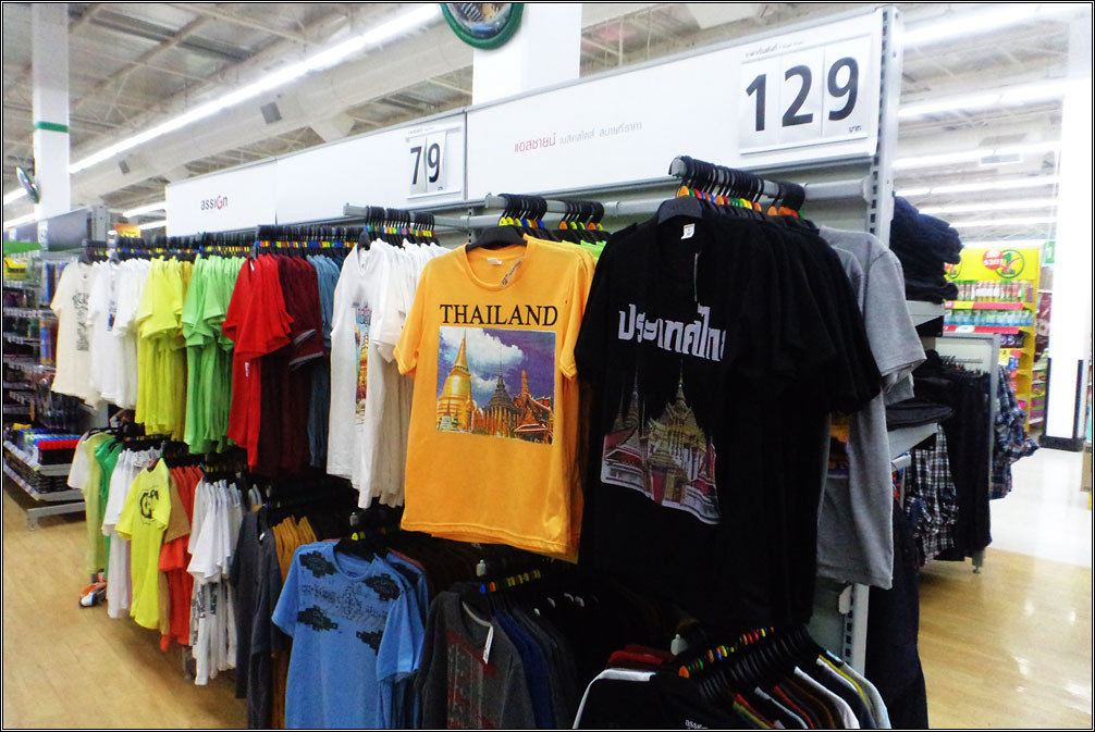 Вот — полюбуйтесь ценами на основные потребительские вещи в универмаге Теско Лотус (1 бат — это примерно 2 рубля): есть ли смысл переть с собой тапки, футболки, джинсы и прочую объемную лабуду?Ну, заодно и цены на основные продукты питания посмотрите, при наличии кухни жизнь здесь обходится очень недорого. Да и все остальное тут есть, от шампуней и кремов до велосипедов и холодильников.
