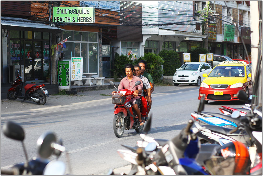 Тайцы вообще на мотобайк садятся в дошкольном возрасте и чувствуют его как продолжение своего тела, от них вреда точно не будет, они способны с ним управиться с закрытыми глазами, в любом месте и с любой нагрузкой. Самая серьезная опасность — безбашенная европейская молодежь, дорвавшаяся до возможности надраться пива, накуриться травы и погонять на чем-нибудь помощнее без прав. Этих, конечно, стоит опасаться, но они, слава богу, все-таки не так часто встречаются на дорогах, риск возрастает в основном по ночам, когда закрываются увеселительные заведения.