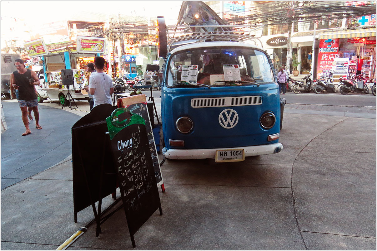 Вроде, вот, в Краби есть все необходимое для жизни. И дороги там пустые, и море хорошее, острова всякие вокруг, да и больниц-ресторанов-супермаркетов хватает. Но там все-таки все сделано скорее утилитарно — чтобы людям было полезно и удобно. А Самуи — остров исключительно туристический, и все делается не просто так, а чтобы турист посмотрел, попользовался, и еще раз обязательно пришел и купил. Так что тут тебе будет и сакура пластмассовая, и гипсовый фламинго, и пиво из VW Transporter, пока дети на карусельке крутятся рядом с цветастыми персонажами из последних диснеевских мультиков.