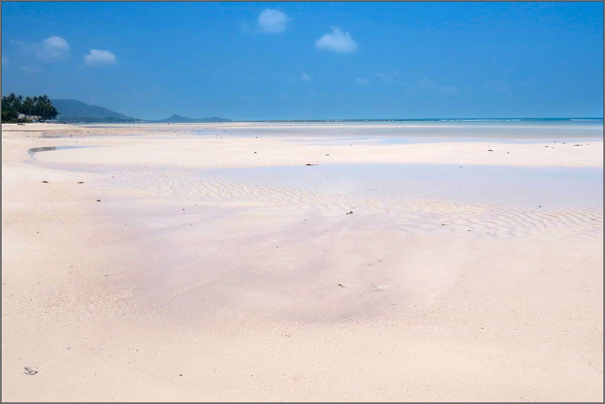 Вот, например, юг Самуи. Он настолько отличается от остального острова, что иногда кажется, что ты попал в какое-то совсем другое место. Здесь тихо и пусто, здесь в разы меньше всего: отелей, туристов, магазинов, развлечений, машин, ресторанов, домов. Вдоль моря идет дорога, по которой почти никто не ездит. Да и само море — мелкое, в отлив дно обнажается на несколько сотен метров, а песок мелкий и белый, в отличие от крупного и желтого где-нибудь у нас на Ламае, на северном Маенаме или западном Липа Ное.