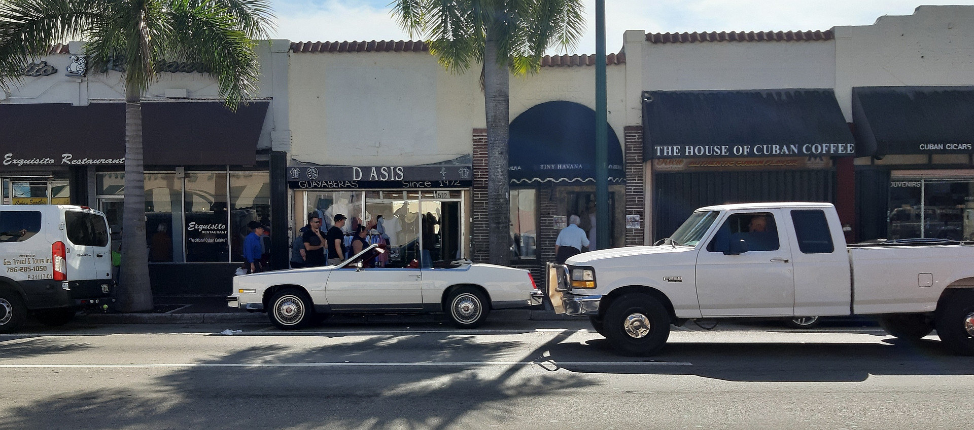 Один из туристических атракционов Майами — «Маленькая гавана» — райончик с кубинским колоритом. Точнее, с колоритом беженцев с Кубы (если нажать на фотки, они становятся больше, красивее и разборчивее, например, можно разглядеть, что все вывески, про что-то кубинское, а не просто белые буквы на черном фоне).