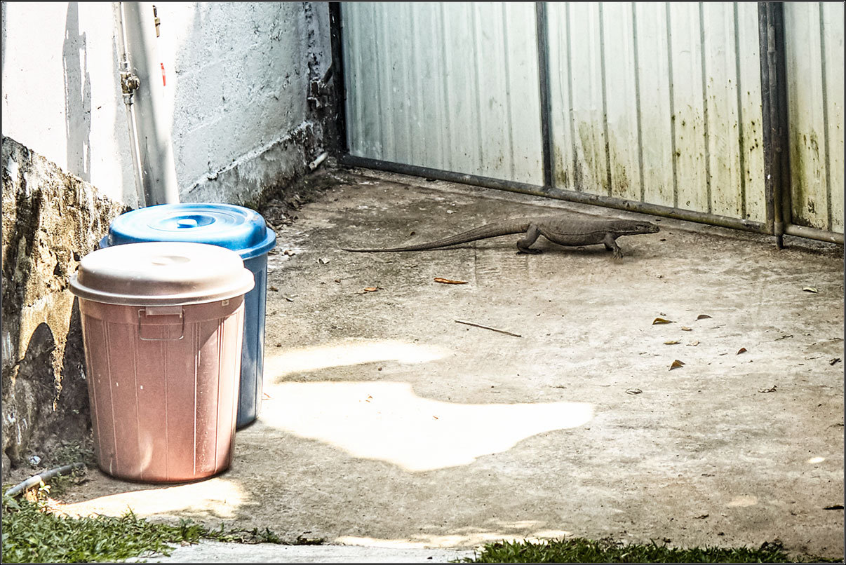 И вдруг в шаге от меня вальяжно проходит вполне такой приличный варан метровой длины.