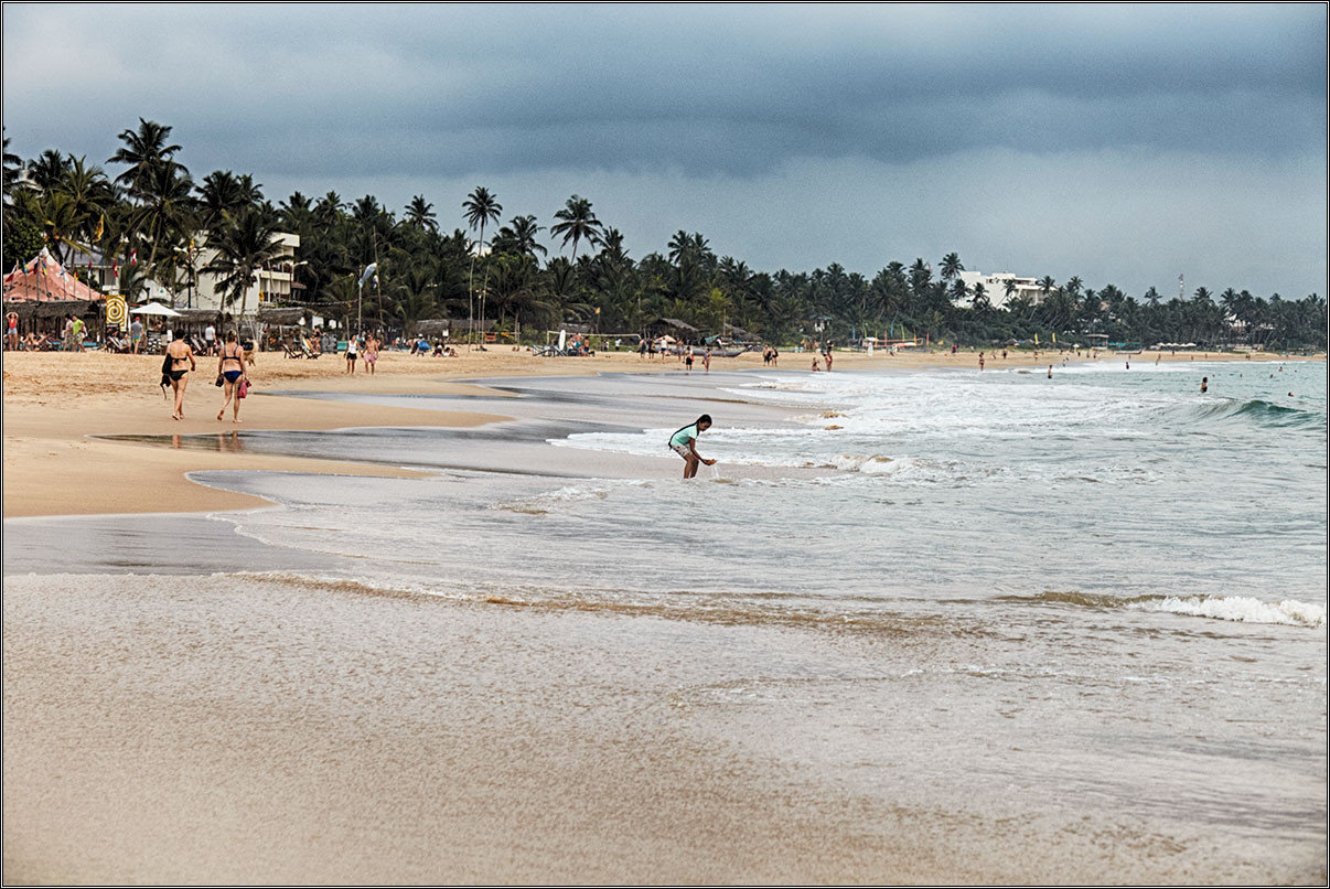 Сам пляж Унаватуна — полукруглая бухта, вход в которую с моря закрыт аж двумя рифами, так что волн тут практически нет. Зато тут очень много народу, которые тоже не любят волны, что, в общем, логично.