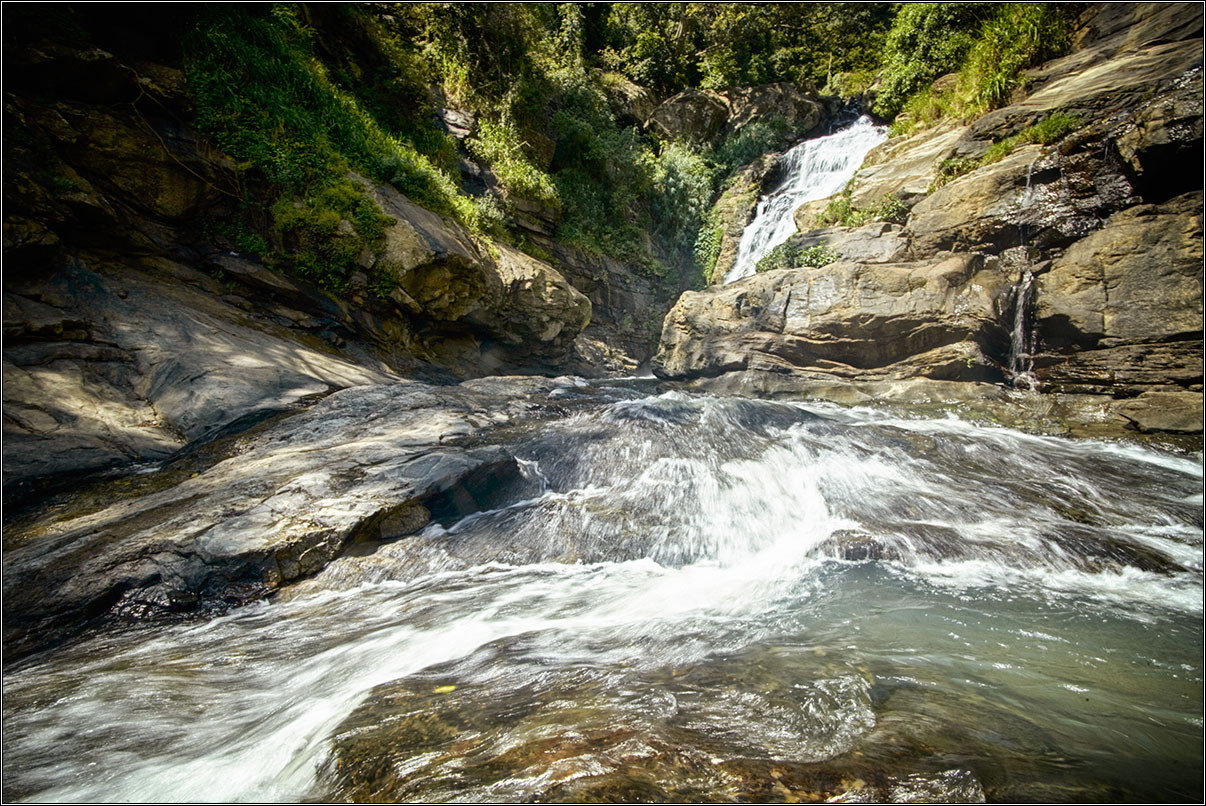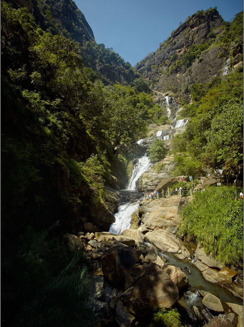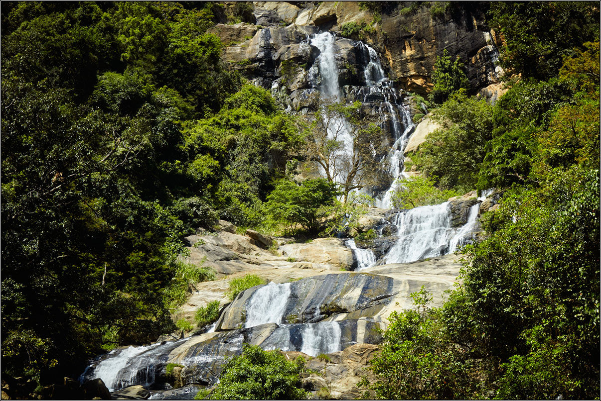 Ну, то есть, он достаточно высокий, но при этом вода не падает, разбиваясь, единой струей, а просто стекает по крутым скалам. Тоже, конечно, водопад, но не очень эффектный. Но здесь все водопады примерно такие, так что туристов тут полно, тем более, что Ravana Falls находится прямо рядом с дорогой, никуда идти не надо, можно хоть из автобуса не вылезать. Рядом продают сувениры и жареную кукурузу, кафешки работают, обезьянки бегают, так что есть на что посмотреть.