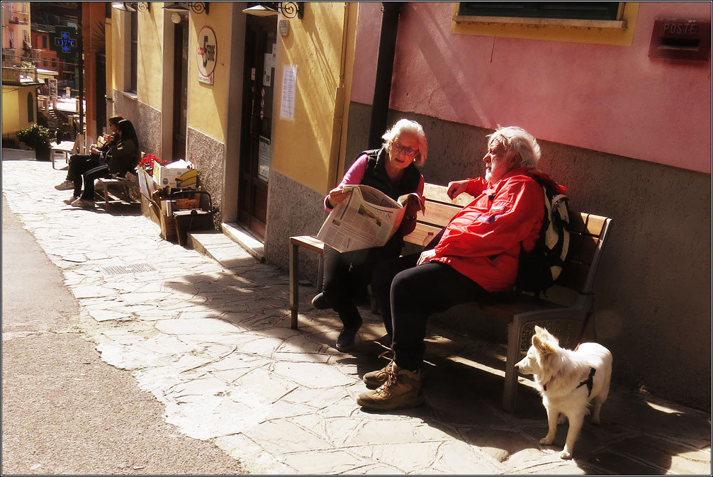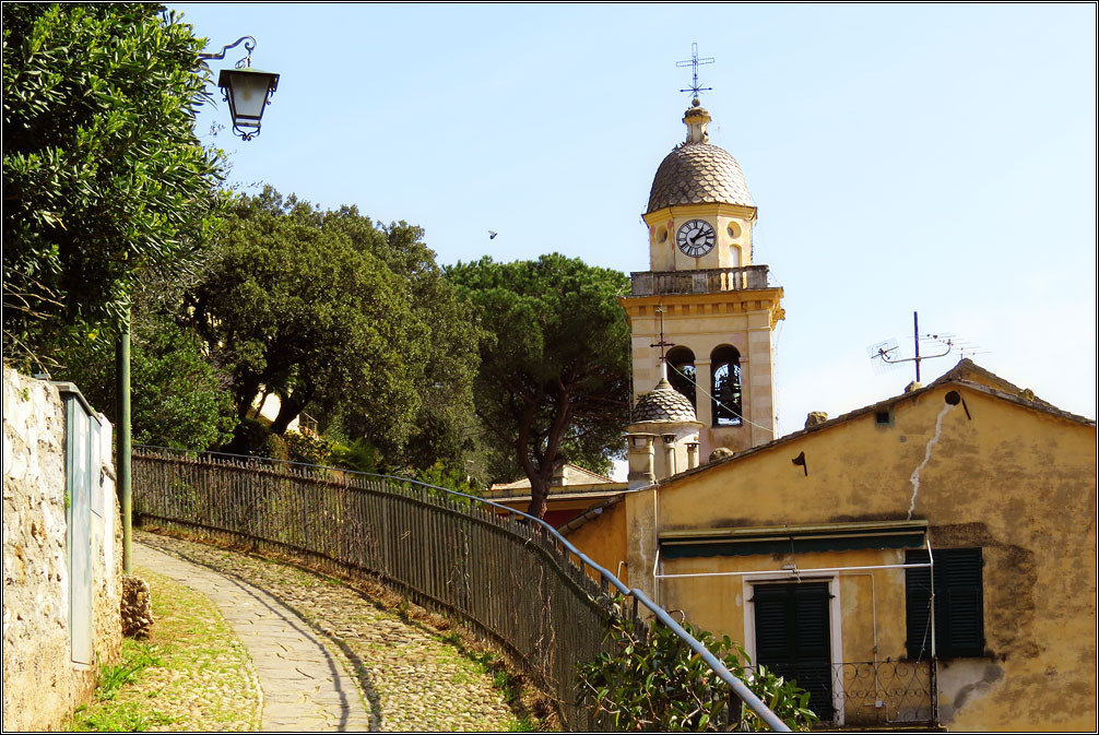 Мы, правда, ленились, и часть пути проделали на обычном рейсовом автобусе. Вообще, после первых дней, когда мы с утра ломились до вечера скакать по горам, мы оба слегка утомились. Так что теперь мы гуляем плавно и неспешно, с привалами в кафешках и на лавочках, почти как многочисленные итальянские пенсионеры, которых тут явно больше, чем всех остальных туристов. В Генуе я регулярно слышал русскую речь на улице, а тут, в окрестностях Рапалло, даже немцев и французов практически нет — все вокруг говорят по-итальянски. Это, кстати, проблема: по-английски объясниться бывает довольно сложно, поневоле приходится учить хотя бы азы языка.