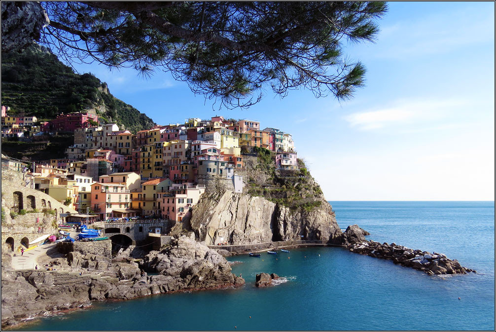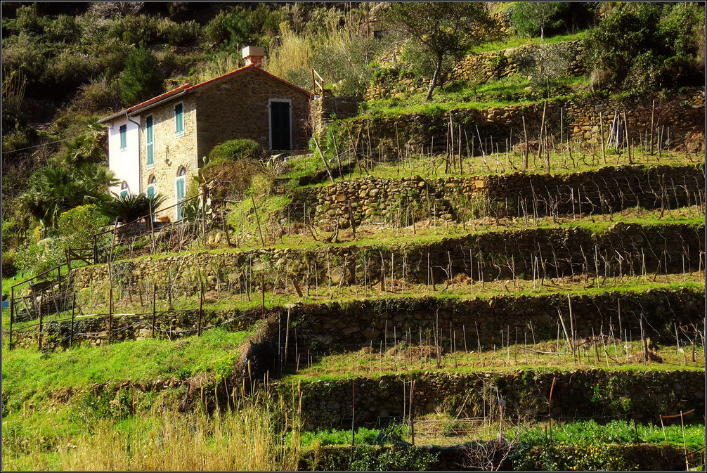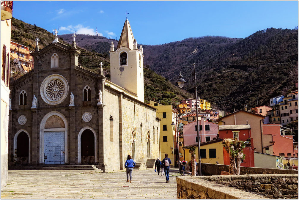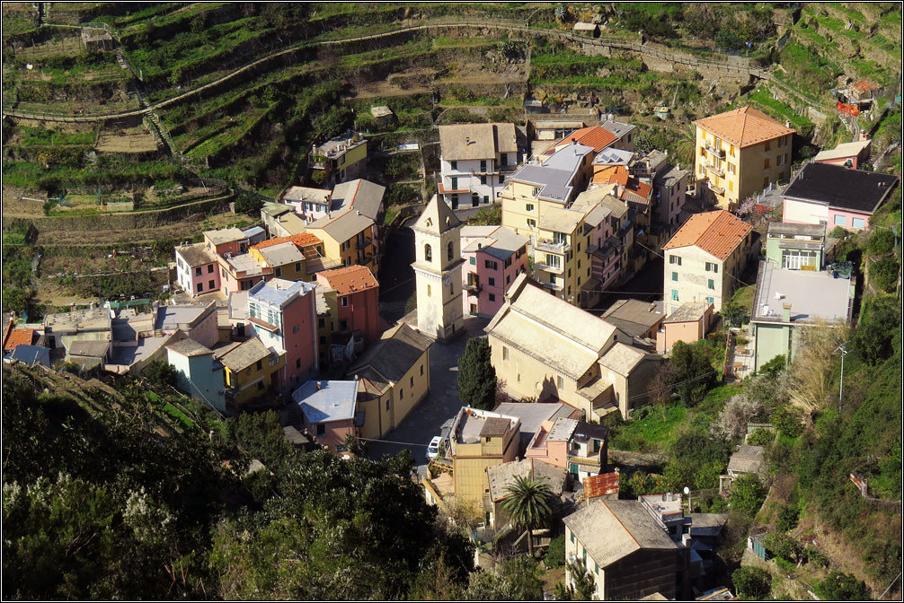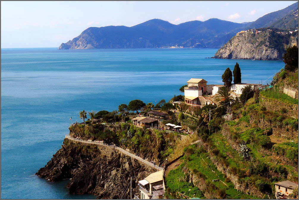 Между деревнями проложена тропа по скалам над морем. Но по случаю несезона тропа перегорожена. В итоге от первой деревни до второй мы добрались, перебравшись пешком через гору, но дальше нас уже на такие скалолазные подвиги не хватило, и мы ездили, как и все остальные, на электричке.