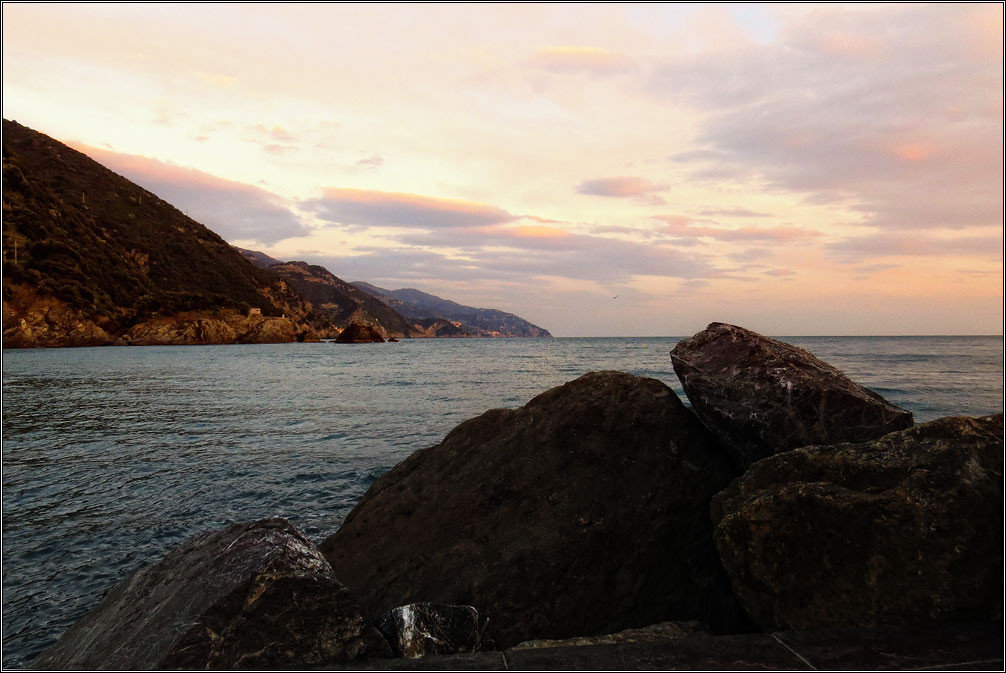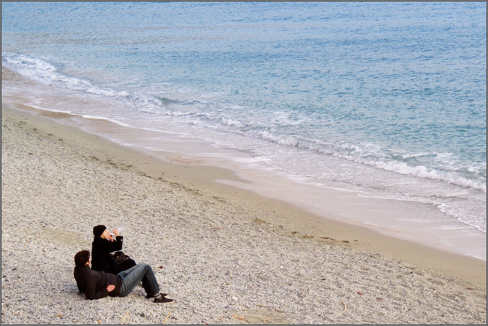 Впрочем, с пляжами тут в принципе не особо. Песок серенький, его мало, десяток человек лягут — и места не останется. Даже самый длинный из окрестных пляж в Монтероссо крайне неширок и узок.