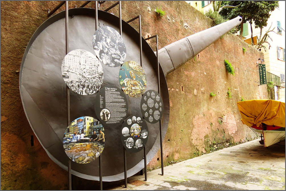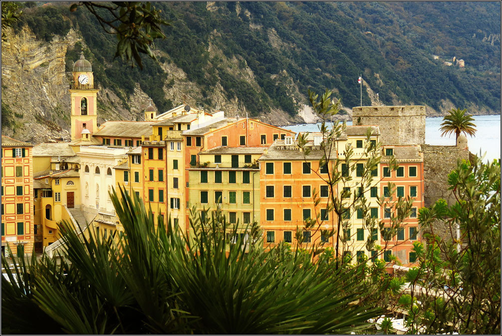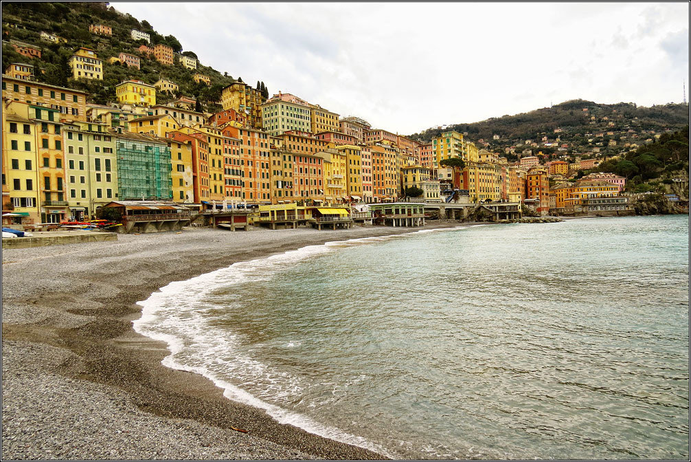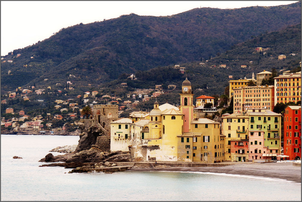 Городок Камольи (Camogli) оказался единственным в Италии, который встретил нас холодным ветром, пасмурным небом и хмурым морем. Так что погуляли мы там не очень долго, быстро осмотрев немногочисленные достопримечательности, вроде гигантской сковороды, на которой горожане ежегодно жарят что-то грандиозное, набережной, порта, забавных керамических поделок и маяка. Потом мы дошли пешком до соседнего Рекко и попытались поесть там каких-то знаменитых местных фокаччо, которые нам рекомендовал наш итальянский приятель Оскар. Однако по случаю плохой погоды и отсутствия туристов правильная фокаччерия была закрыта.