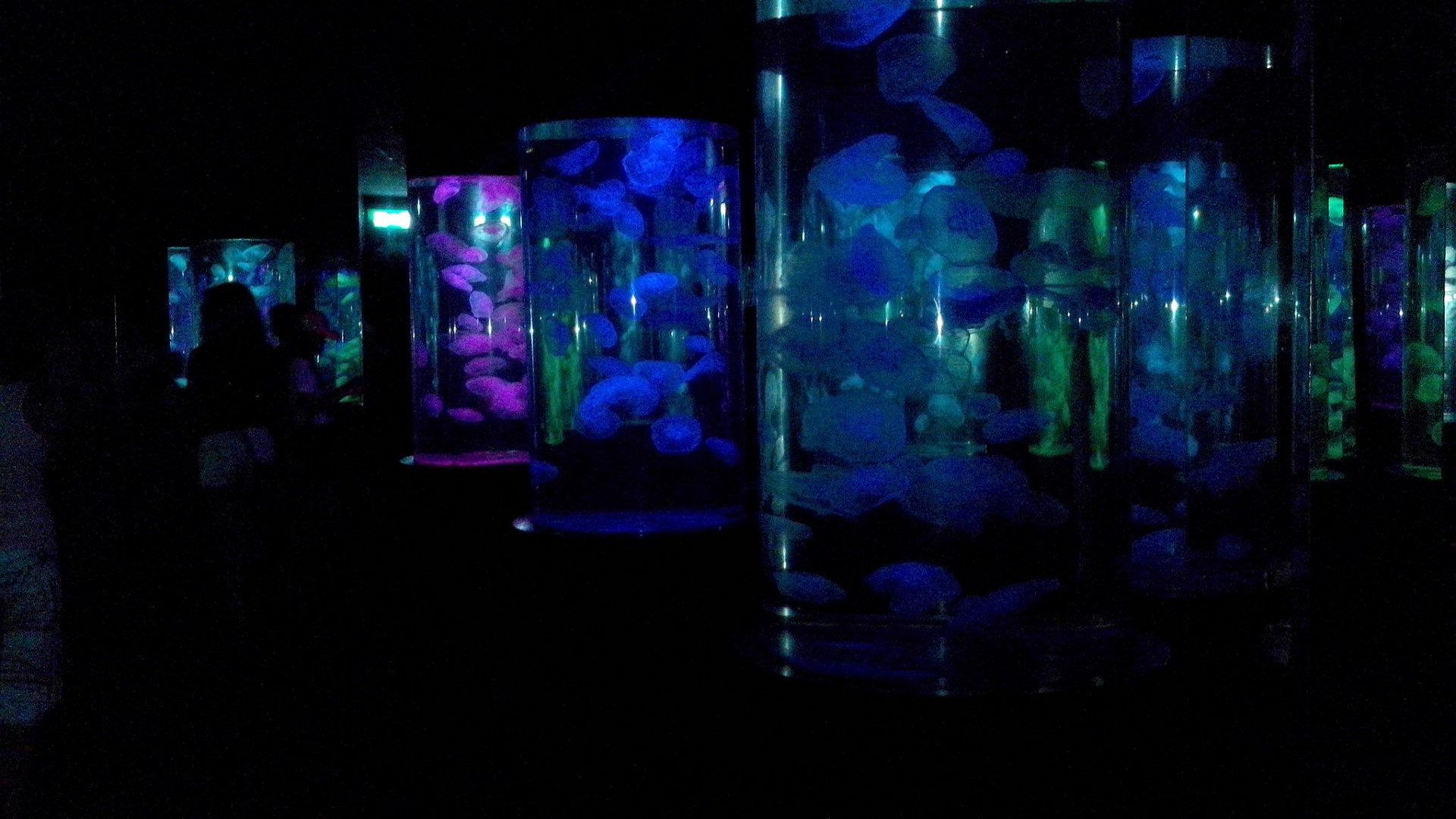 Они подсвечиваются разными цветами в полной темноте и это очень красиво. Но вероятно медузам такая дискотека не особо комфортна.