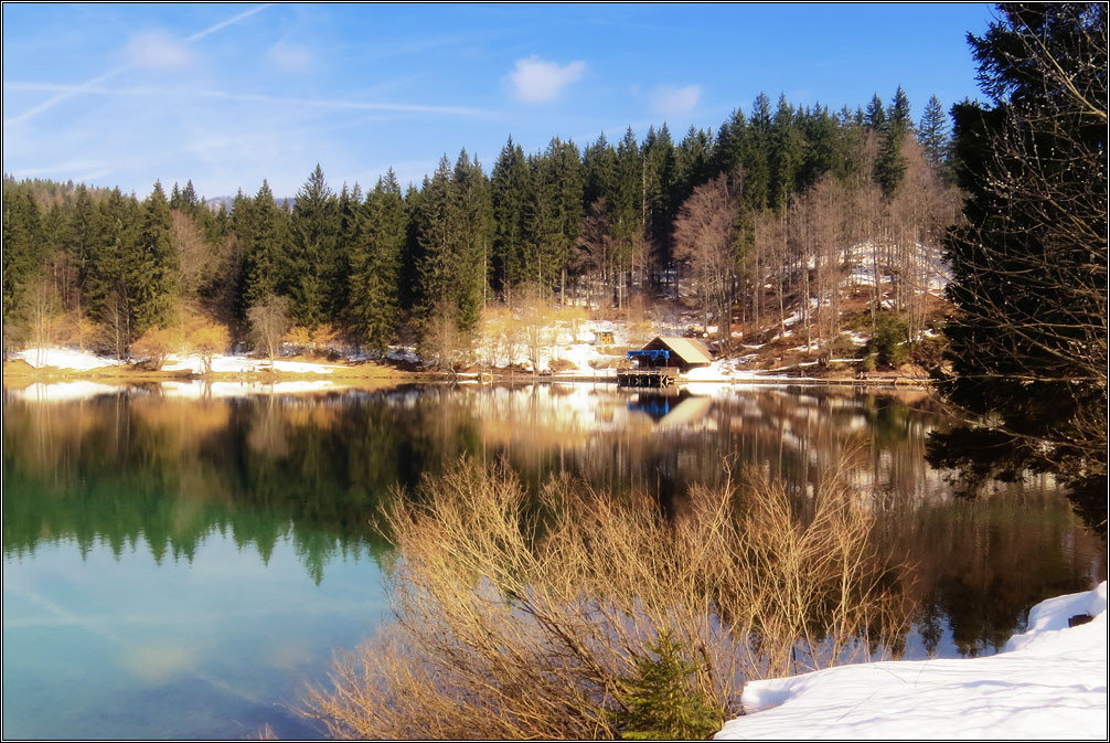 30.03.2016 — заездом из СловенииLago di Fusine в Италии — это два небольших озера неподалеку от города Тарвизио, на границе со Словенией.