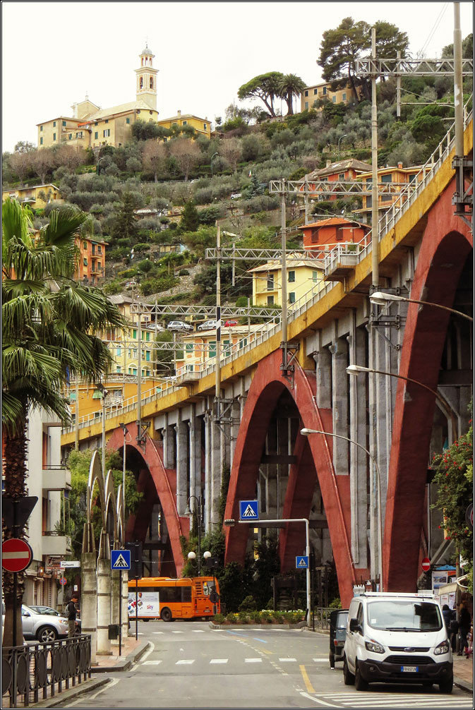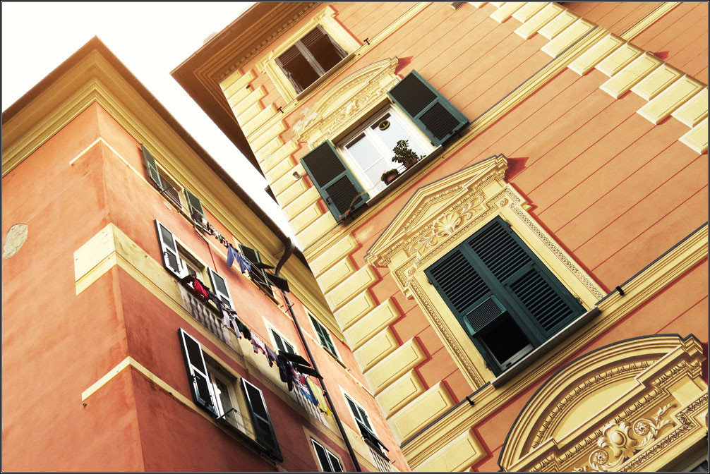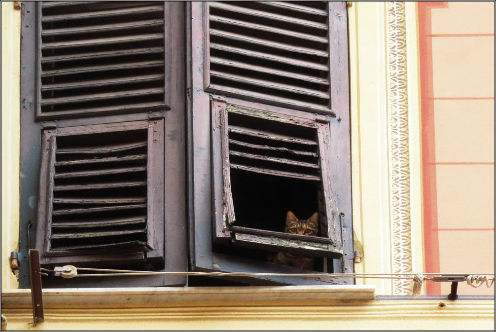 В Северной Италии очень популярна настенная роспись. Но не граффити или фрески, а такой, беспардонный обман зрения для туристов. Идешь по улице, видишь впереди красивый каменный дом, с колоннами, барельефами, арками и фигурной штукатуркой. Подходишь поближе — ага! — фиг вам, это все просто нарисовано поверх обычной крашеной стены.
