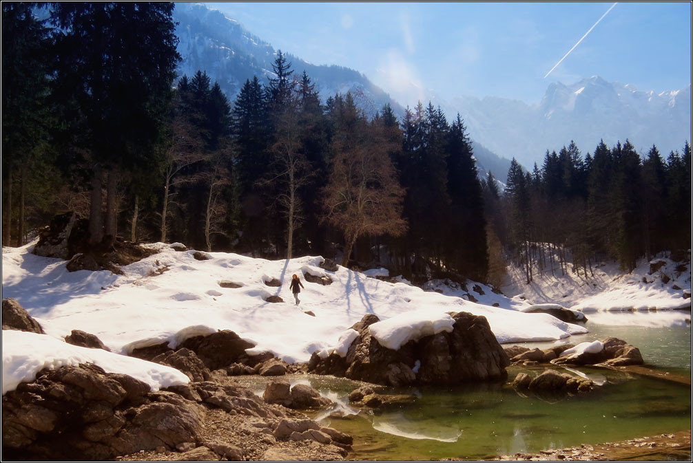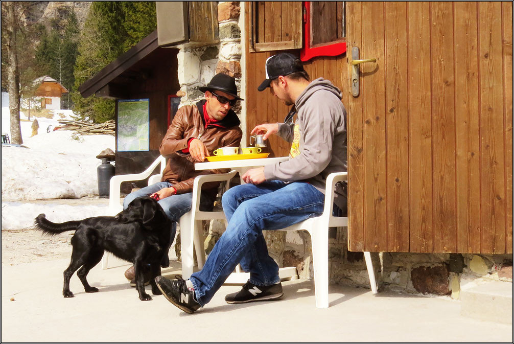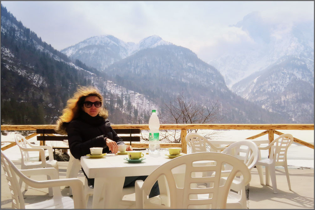 Тоже очень фотогеничное и красивое, тоже с еще нерастаявшим льдом и видами на горы. Мы там сидели, пили кофе, а рядом с нами сидел натуральный молодой Челентано — в шляпе и кожаной куртке, ну очень был похож :)