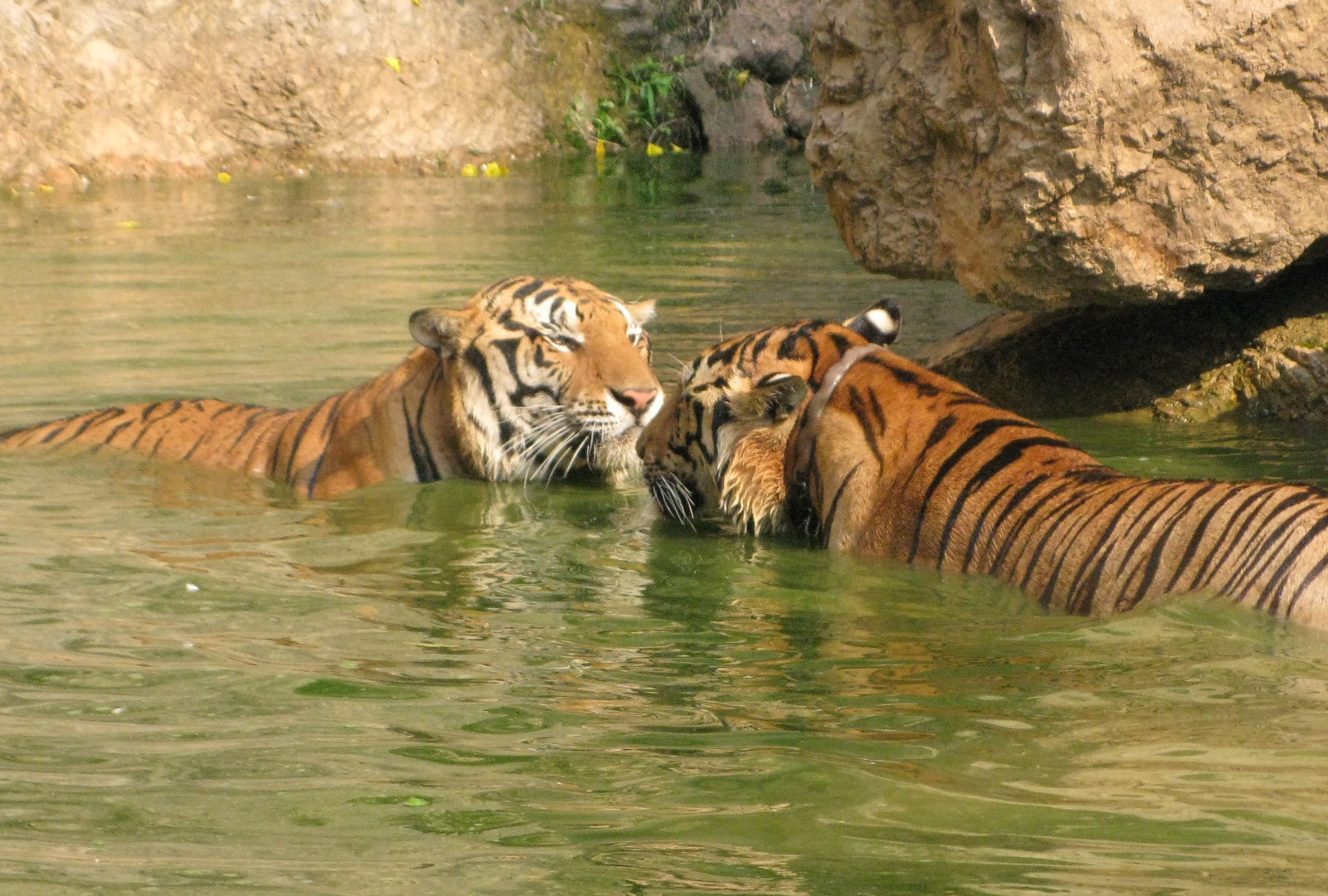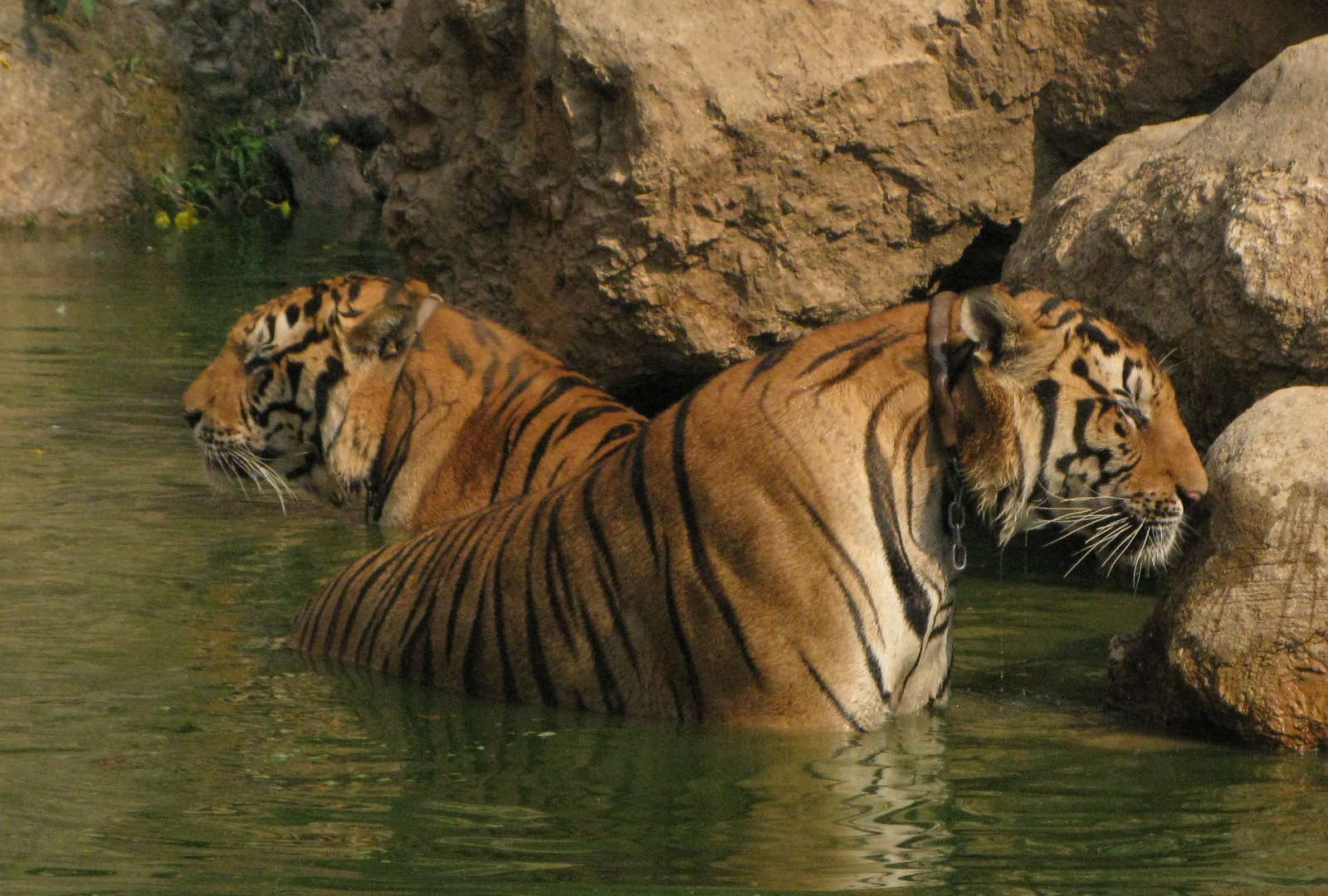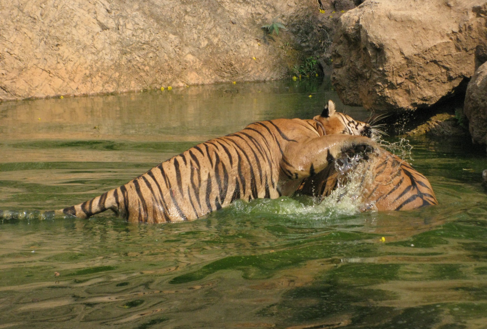 А потом тигры купались, а туристы жарились на солнце и им завидовали.