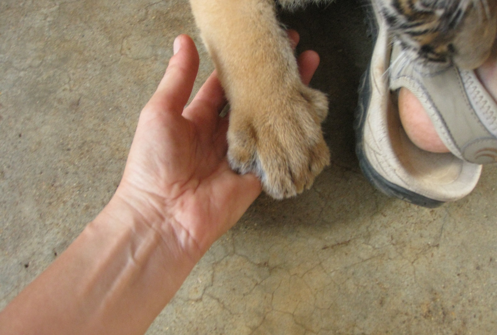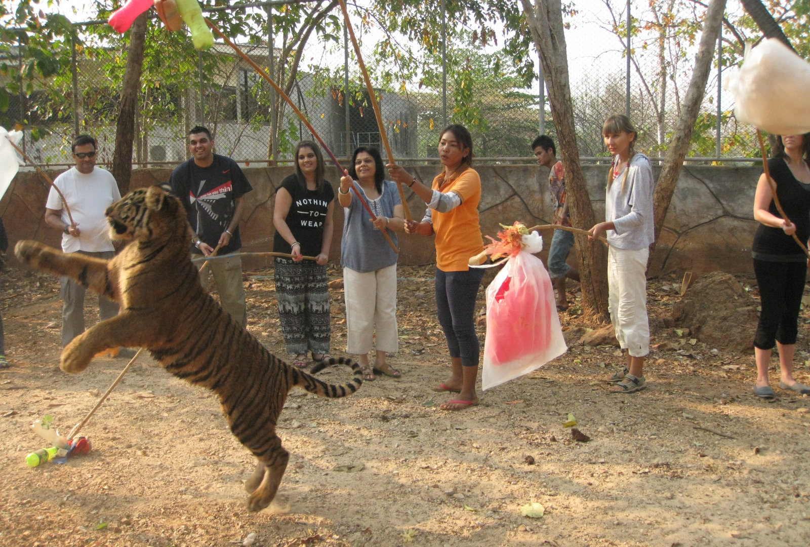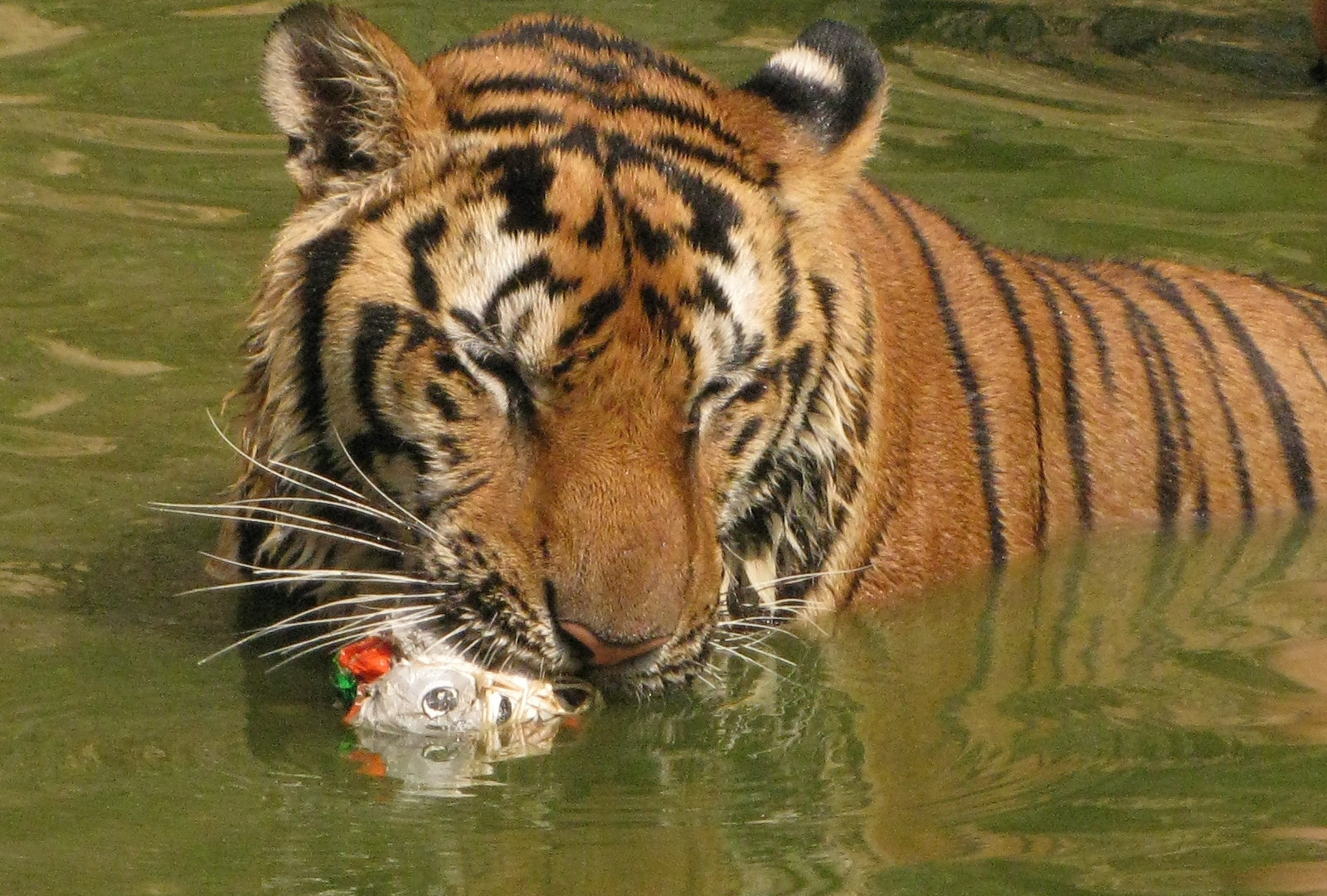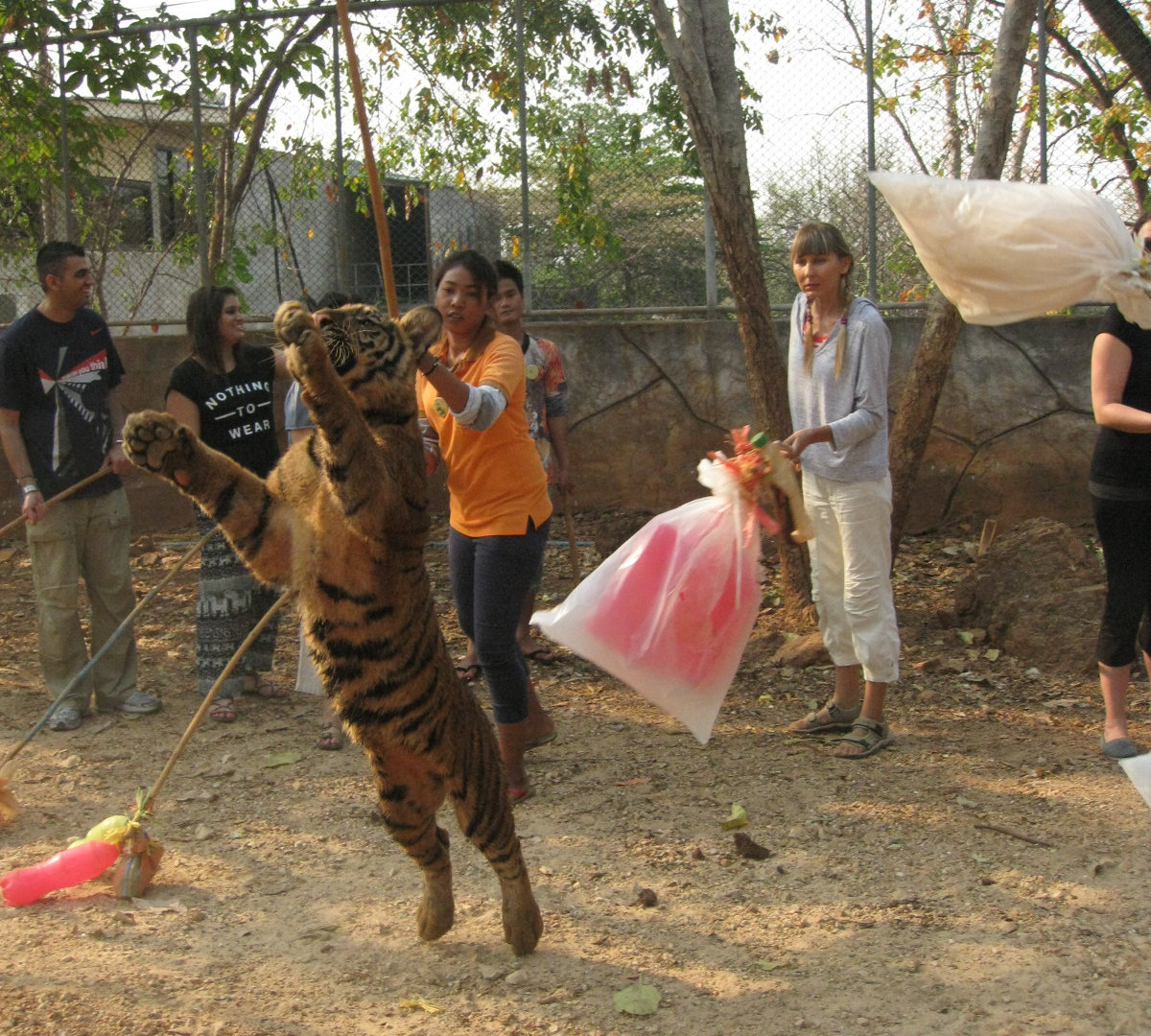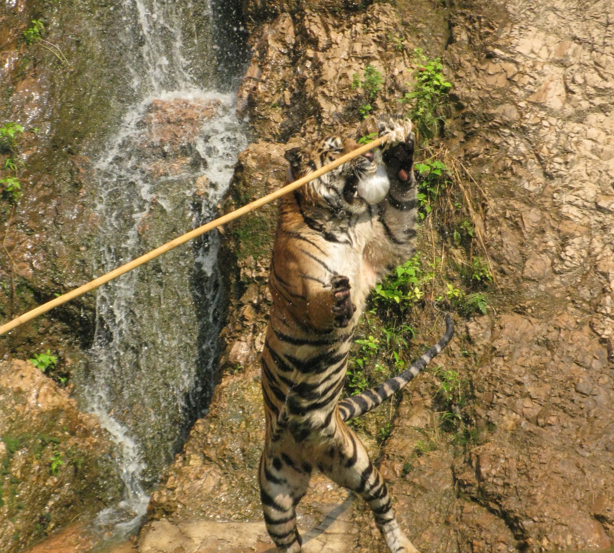 А потом- играть! Как играют с тигром? Так же,как и с обычной домашней кошкой:верёвочка+бантик:) Правда, в случае с тигром вместо верёвочки-длинная палка, а бантик-наполненный воздухом пластиковый пакет.
