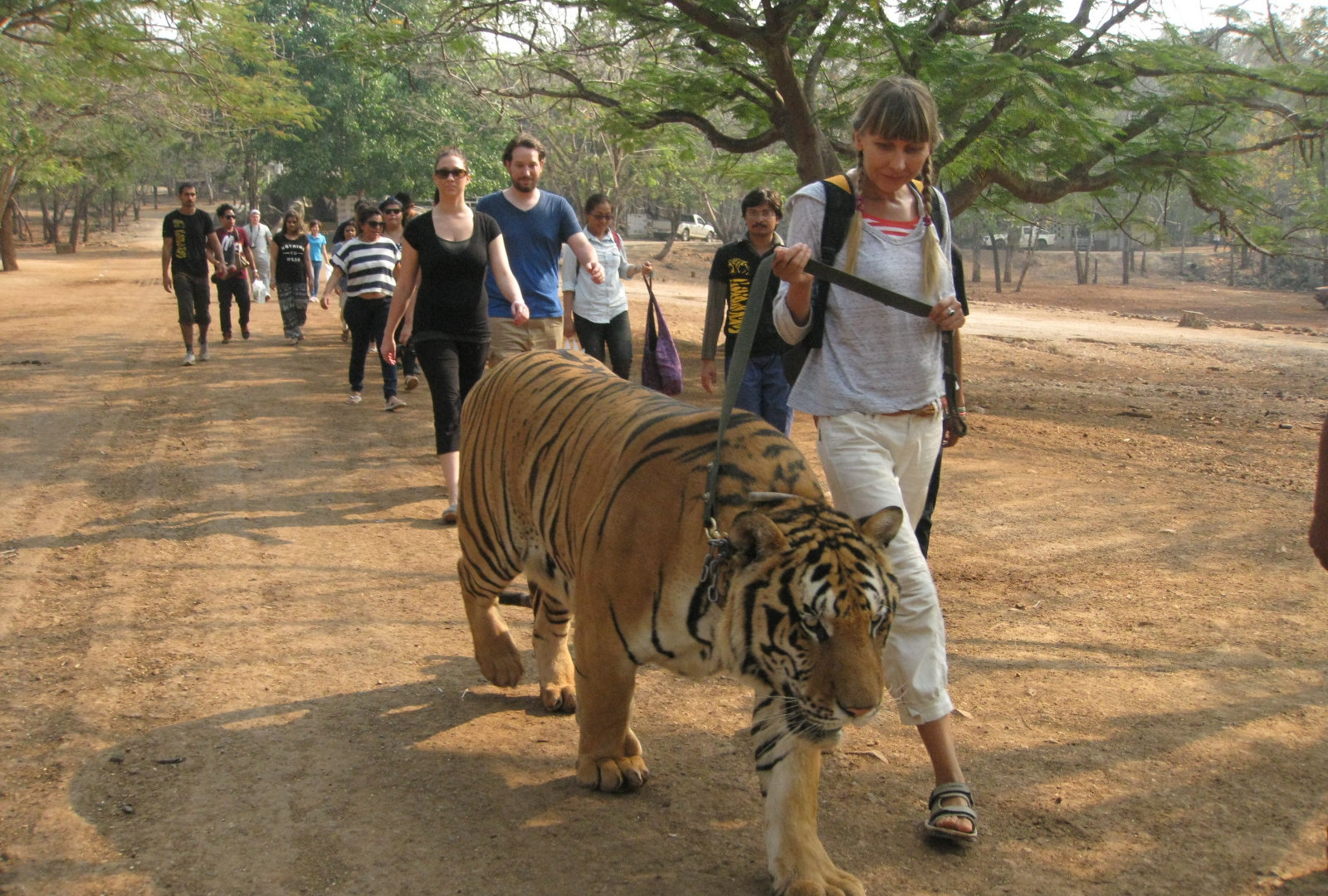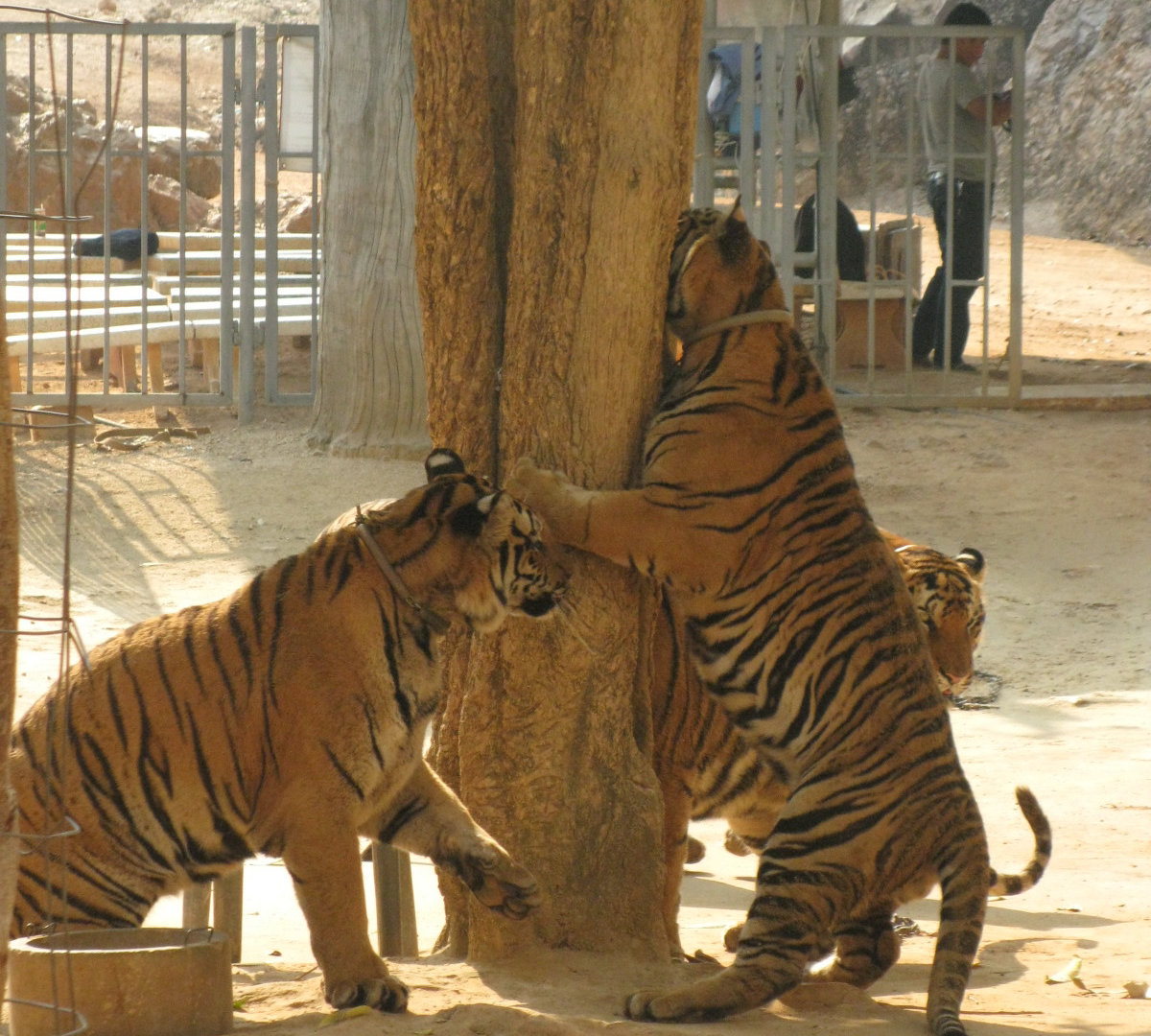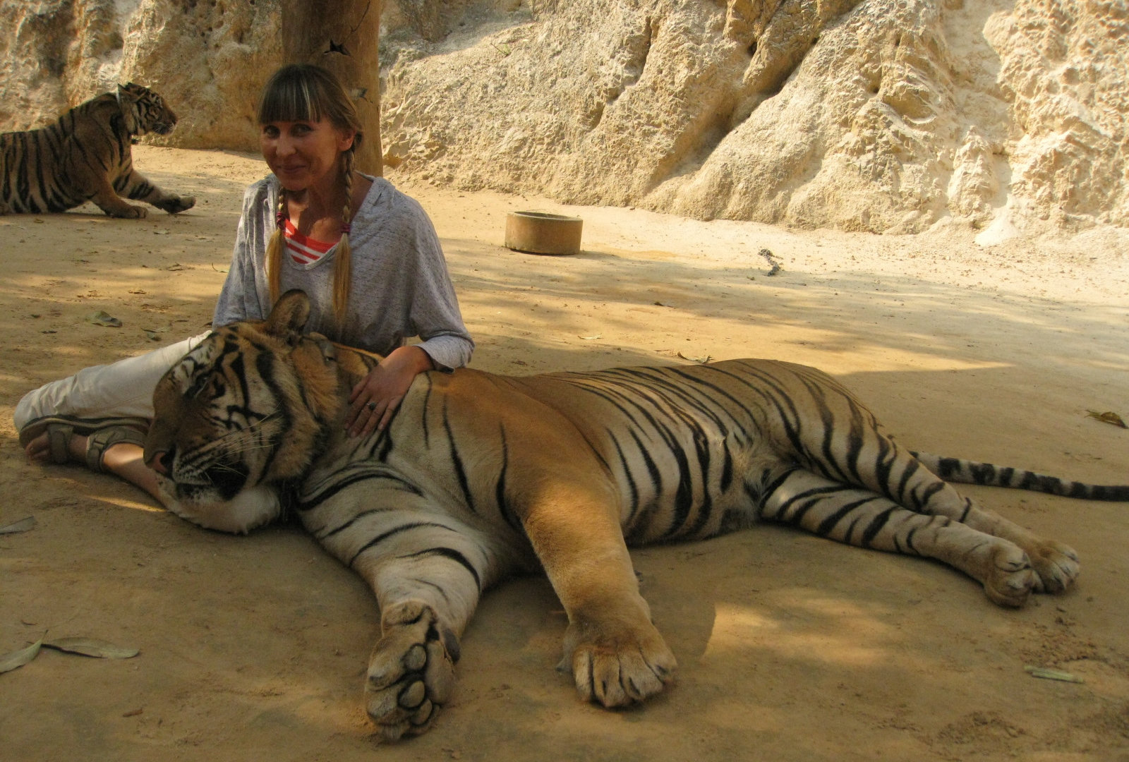 Тигры гуляли по каньону. А потом желающие фотографировались с тигром на коленях. Он был сыт, ленив и доброжелателен.