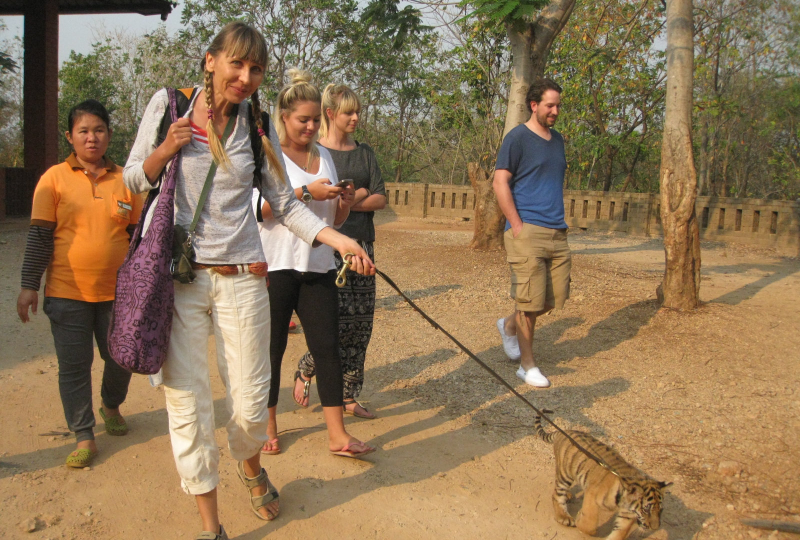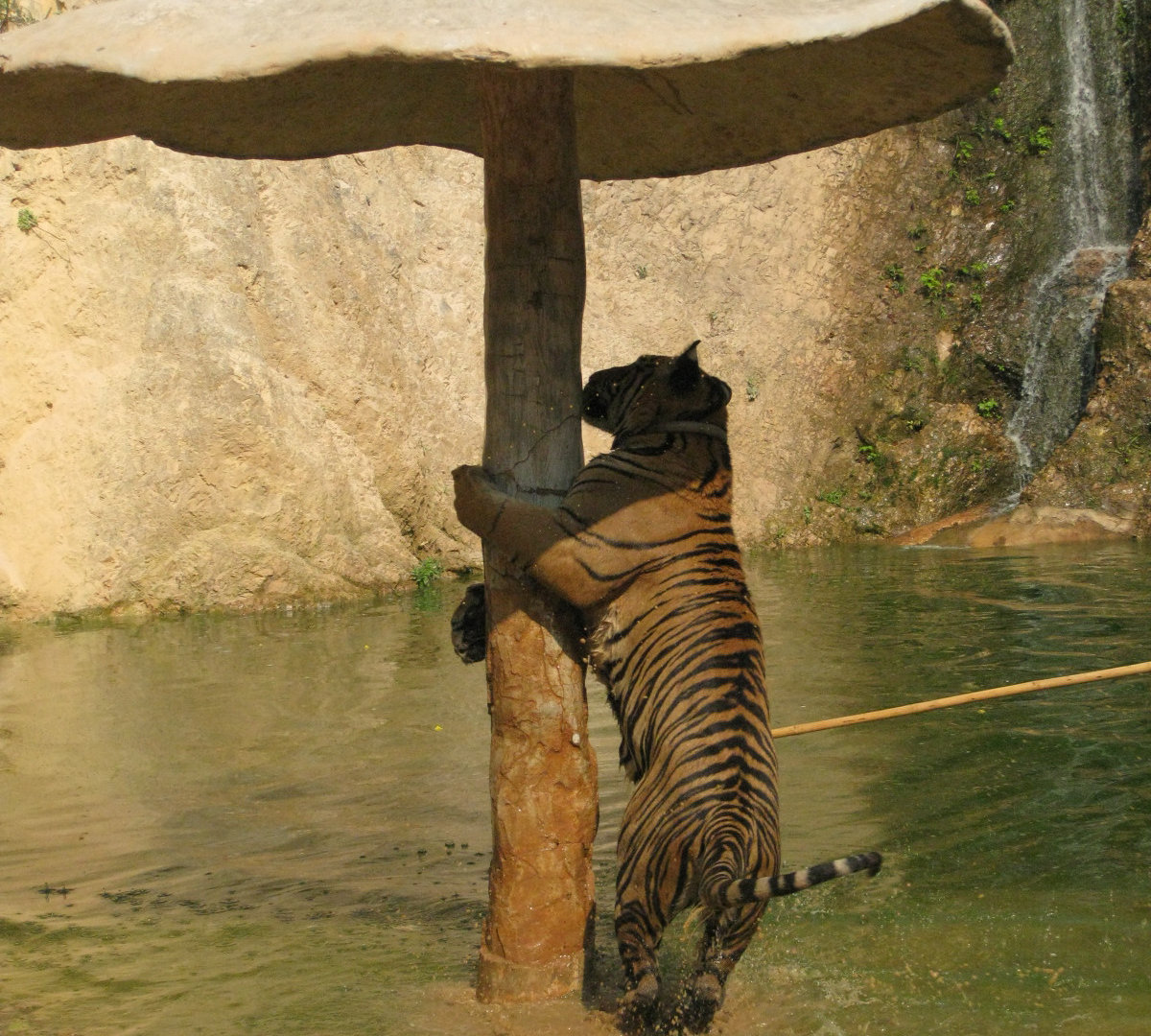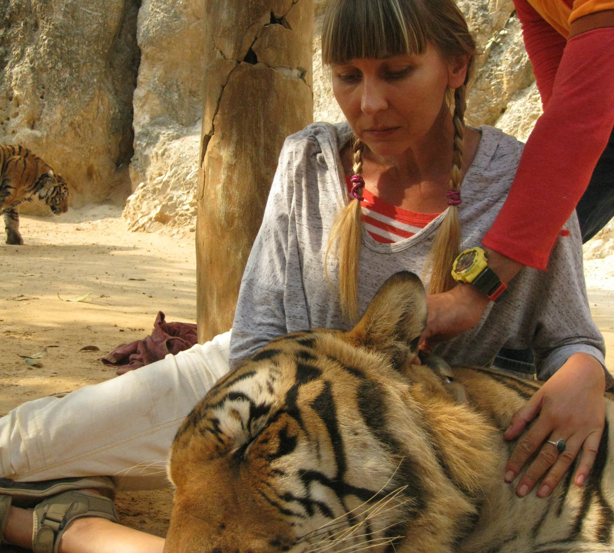 Тигры гуляли по каньону. А потом желающие фотографировались с тигром на коленях. Он был сыт, ленив и доброжелателен.