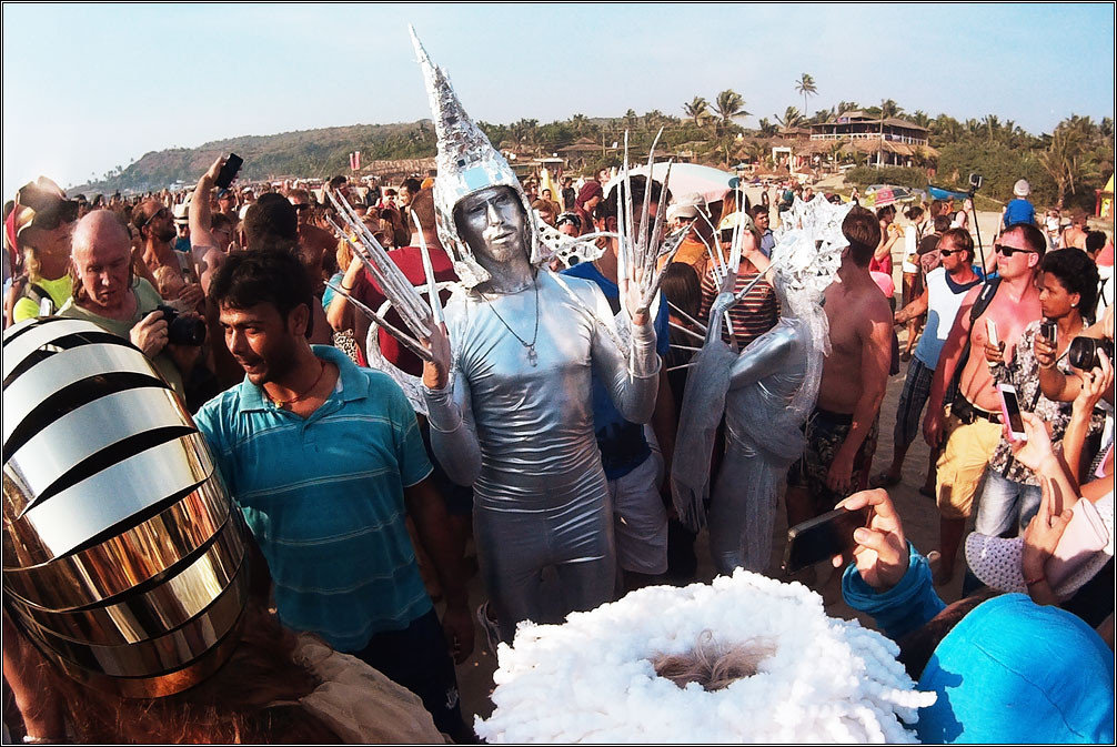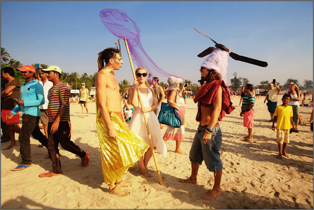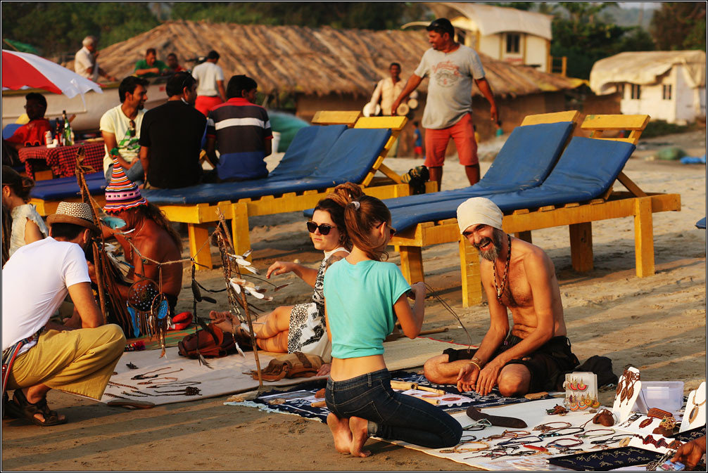 Можно много и справедливо ругать курортный Гоа. За грязь, толпы на пляже, сутолоку торговых рядов, постоянный шум, бестолковое движение и т.д. Но одного у него не отнять точно — это рай для жанрового фотографа. Достаточно на закате на полчаса вылезти на пляж Арамболь — и можно наснимать хоть целый альбом разных ситуаций, сценок, характеров и необычных лиц. Причем здесь это никого не смущает — идешь себе, щелкаешь в разные стороны, при этом совершенно не выделяешься из толпы себе подобных. Каждый второй турист здесь — с фотоаппаратом, и так же непрерывно щелкает во все стороны :)