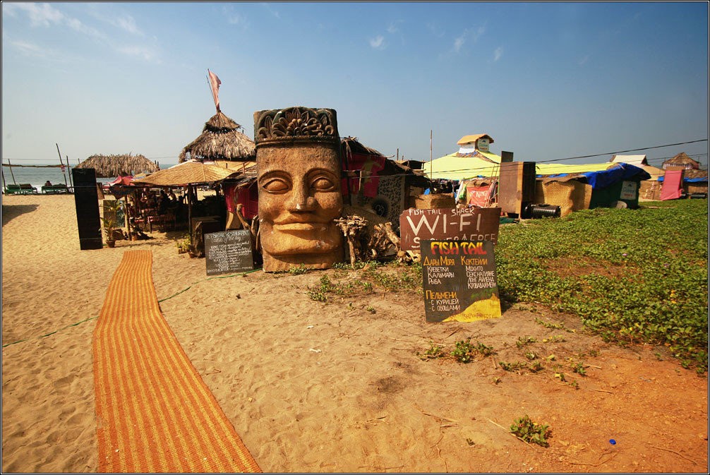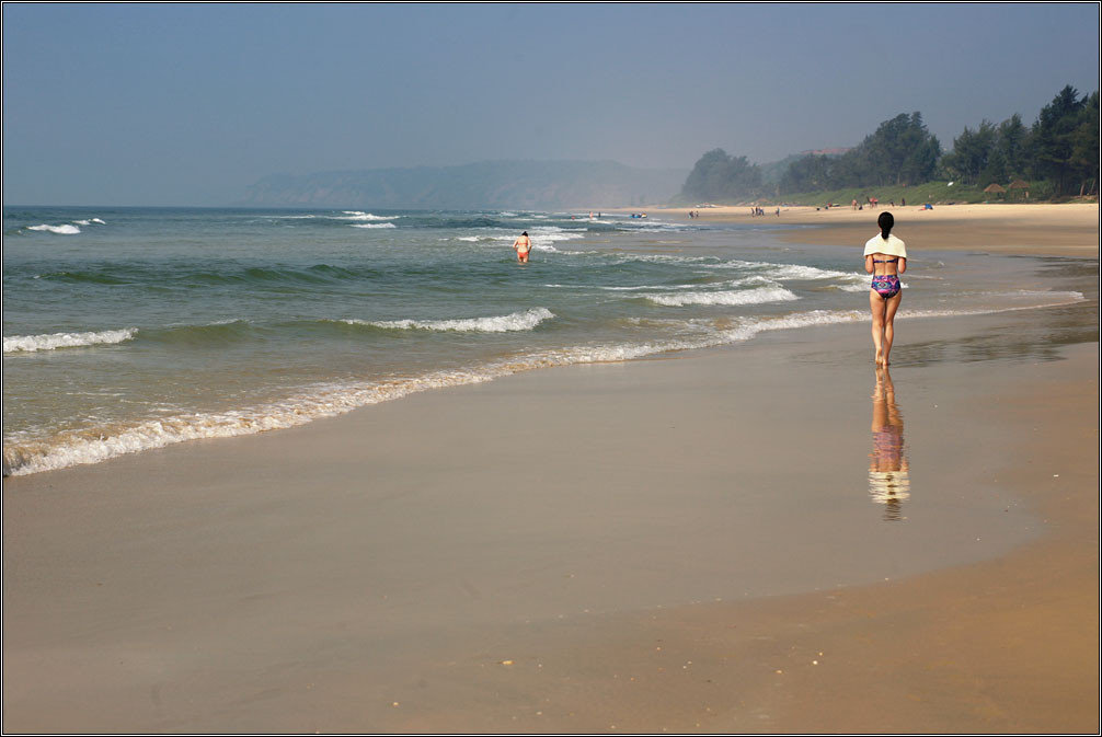 Ну, то есть, по большому счету, это все один материковый пляж океанского побережья — плоский, широкий, длинный, с мелким песком. Реальные отличия по названиям у них — лишь в наполнении. Бага и Калангут — вотчина пакетного туризма, Арамболь и Морджим — более молодежные, фриковые и веселые, Кирим и Ашвем — поспокойнее и побезлюднее, Парадайз — практически совершенно пустынный по причине своей труднодоступности.