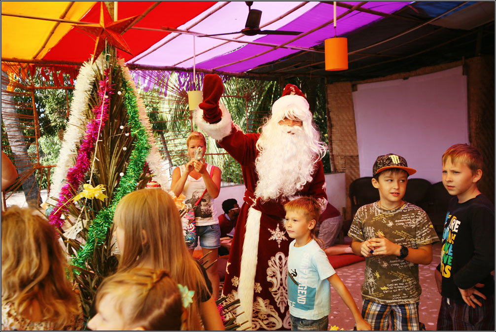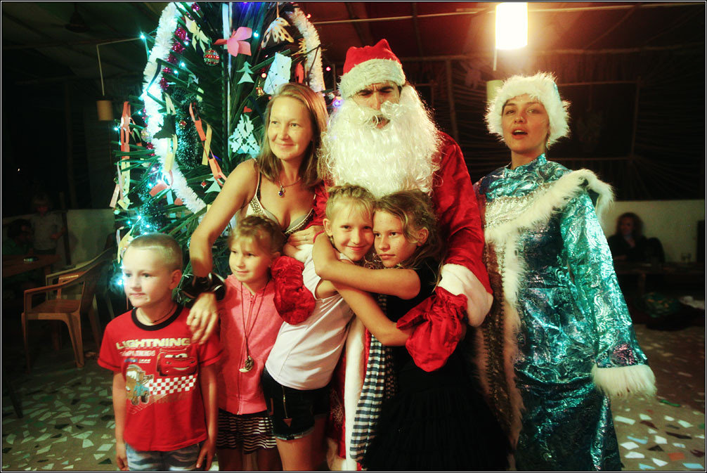 В ресторане «Привет, Андрей» прошел новогодний детский утренник — собрались дети и родители, пришли Дед Мороз и Снегурочка, был хоровод под «В лесу родилась елочка», стихи, танцы и конкурсы, а в конце праздника все получили по мороженому. И пусть елка была сделана из пальмовых листьев, а Дед Мороз босоногий — дети были счастливы.
