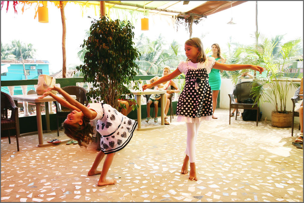 Вообще, надо признать, в Гоа можно зимовать с детьми практически любого возраста. Здесь есть детские сады и школы, как русско- так и англоязычные. Школы, причем, придерживаются нормальной программы, никто не отстает от сверстников в России. Дети учат, помимо естественного английского, французский, испанский и португальский языки. Занимаются таэквондо, плаванием, рисованием, шахматами, и даже снимаются в кино. Есть няни, педиатры, учителя, и организаторы разнообразных кружков и секций. Стоит же все это здесь еще и подешевле, чем в Москве, даже с учетом перманентно падающего рубля.