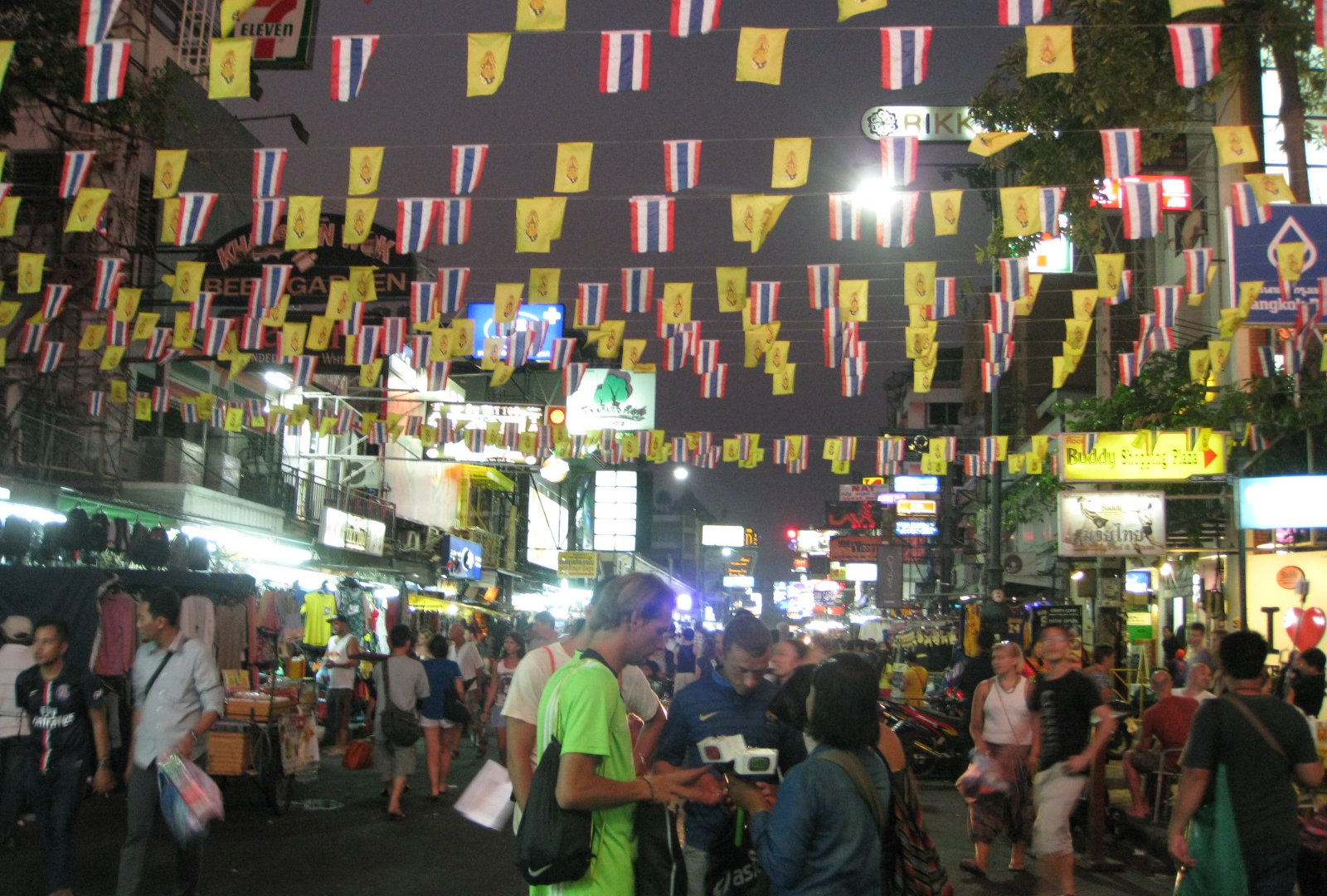 Знаменитая улица Khao San Road. Я гуляла по ней до заката, посидела в кафешке, снова гуляла. Много туристов со всего света, фриков, сувениров, массажных салонов, ресторанчиков.....