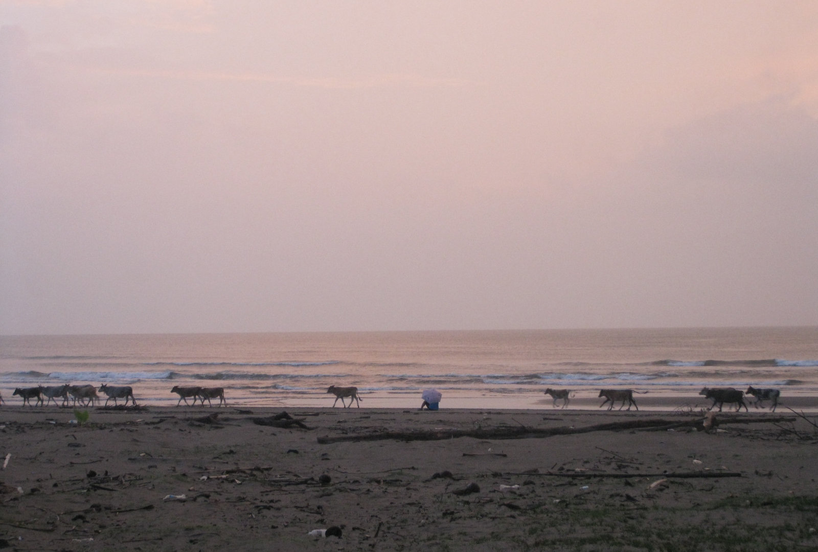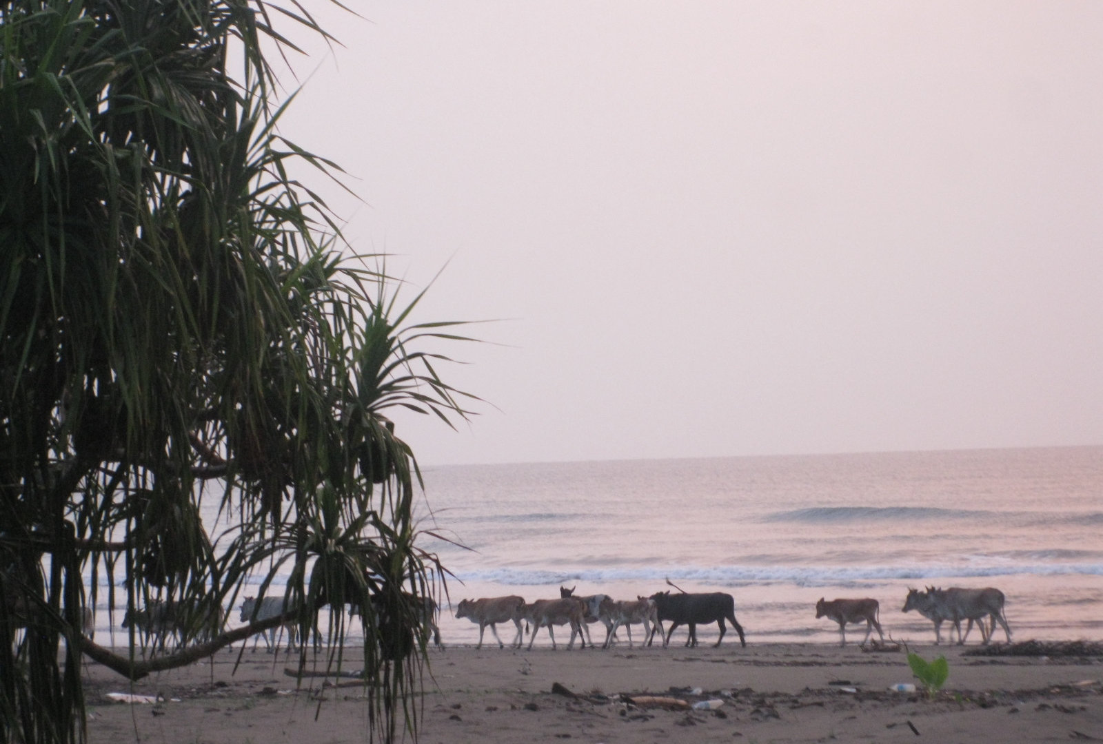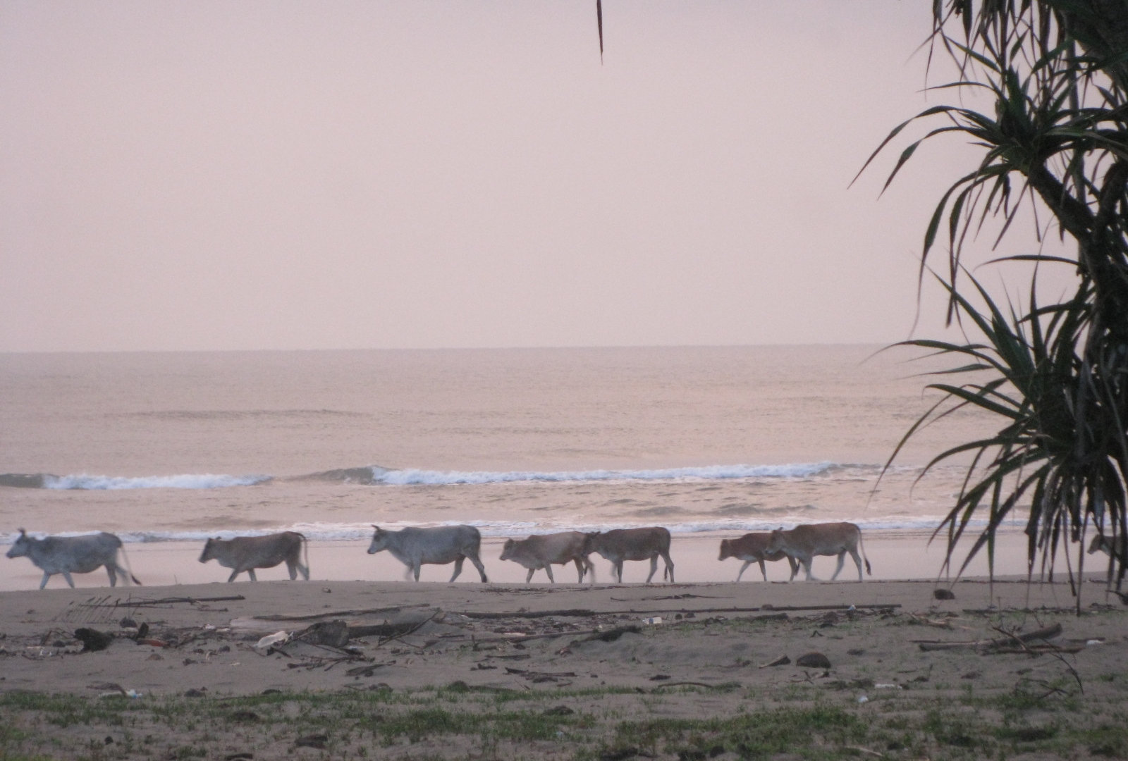 Мы потихоньку шли к кафешке на ужин, когда на пляже появились коровы. Они брели всем стадом по самой кромке воды,растянувшись цепочкой. Корейцы побежали их фотографировать,я тоже не отставала. Ну,не обезьян, так коров увидели:)))