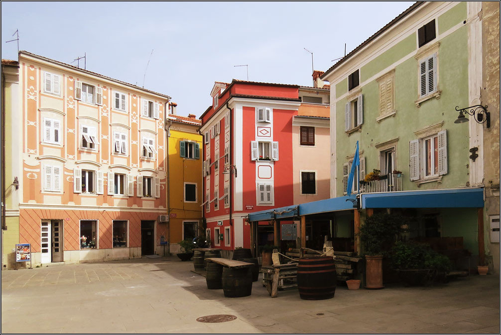 Маленький городок Изола числится словенским, но на самом деле весь итальянский. И название у него итальянское, и говорят в нем часто на итальянском, и названия улиц написаны на двух языках. А главное — итальянский дух, который во всем. Лес мачт в марине. Разноцветные ставни окон. Грозди белья на веревках. Кованые фонари над узкими переулками. Солнечные часы на стене. Даже вкус мороженого в маленькой кофейне на набережной :)