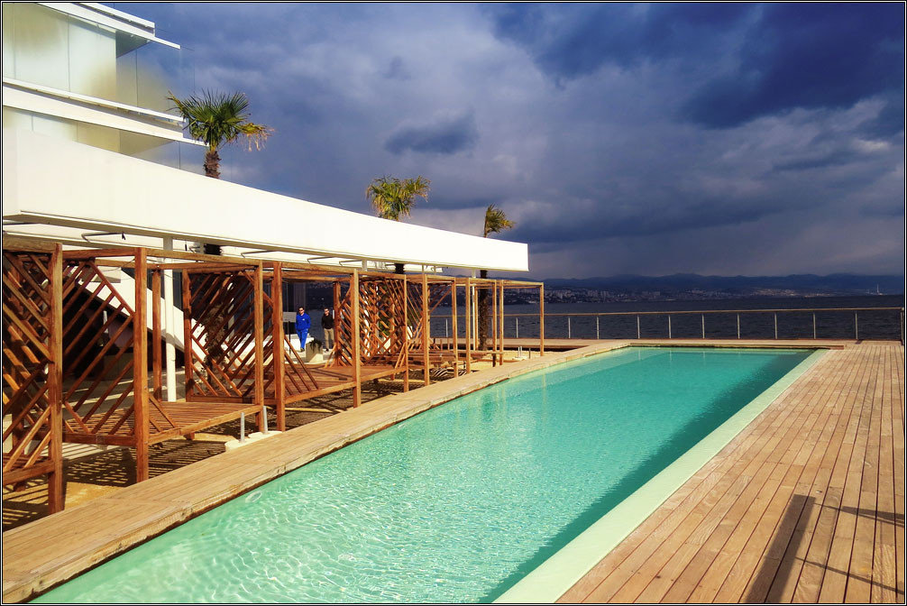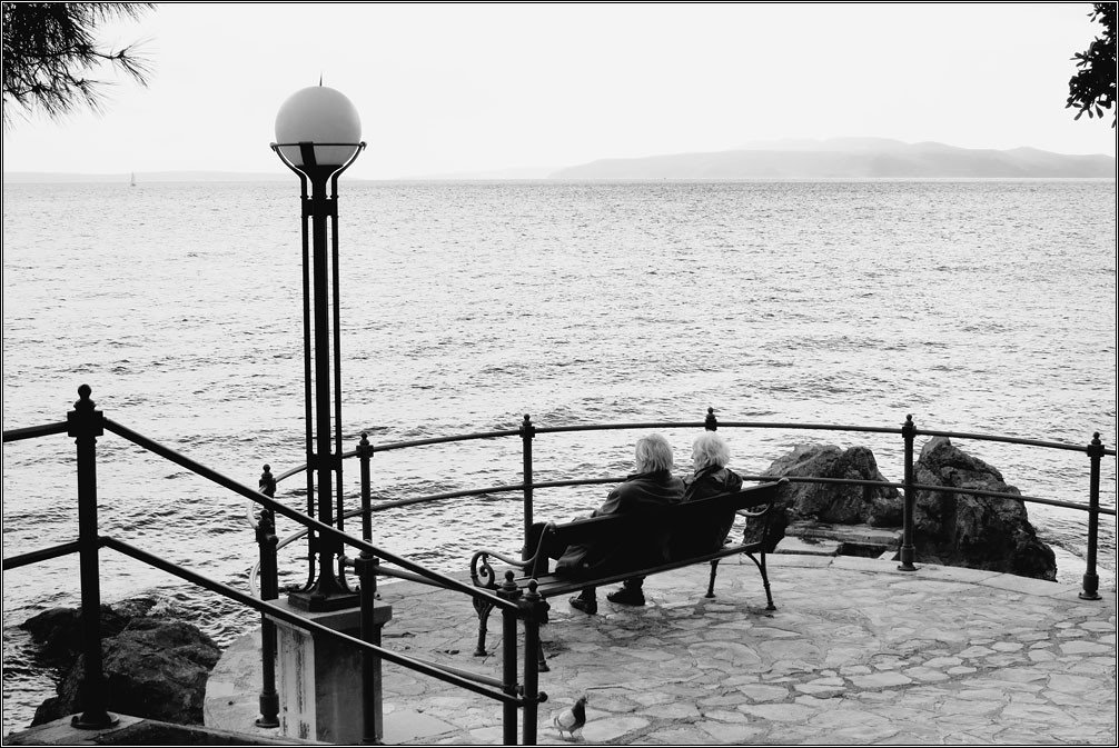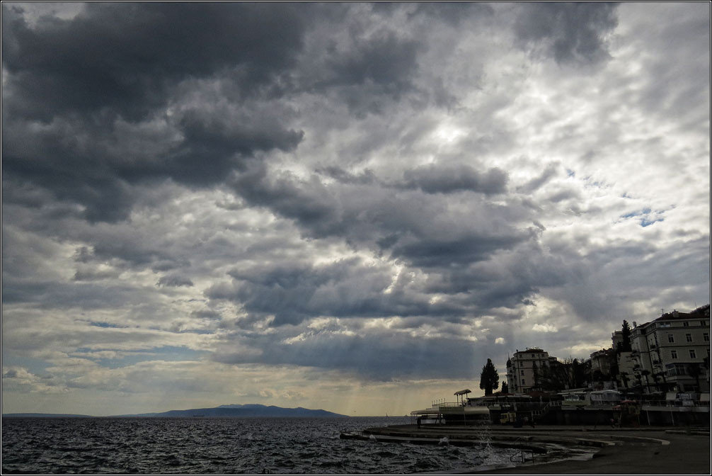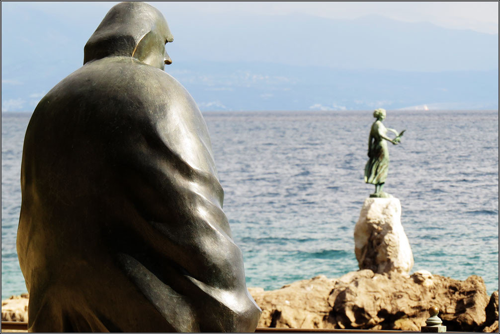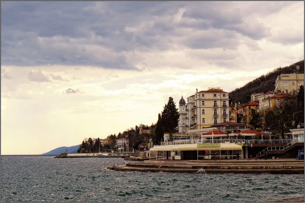 Сели утром на машину, полтора часа дороги — и мы в другой стране, в городе с забавным названием Опатия, который находится уже на хорватском побережье. Между Словенией и Хорватией есть почти настоящая граница — нам даже шлепнули штампики в паспорта. Вдоль шоссе стоят обменники — у хорватов своя валюта, будьте добры, поменяйте ваши евро на местные куны. Вроде бы Хорватия тоже числится в Евросоюзе, но видимо погрузилась в него еще как-то не по самую шею.