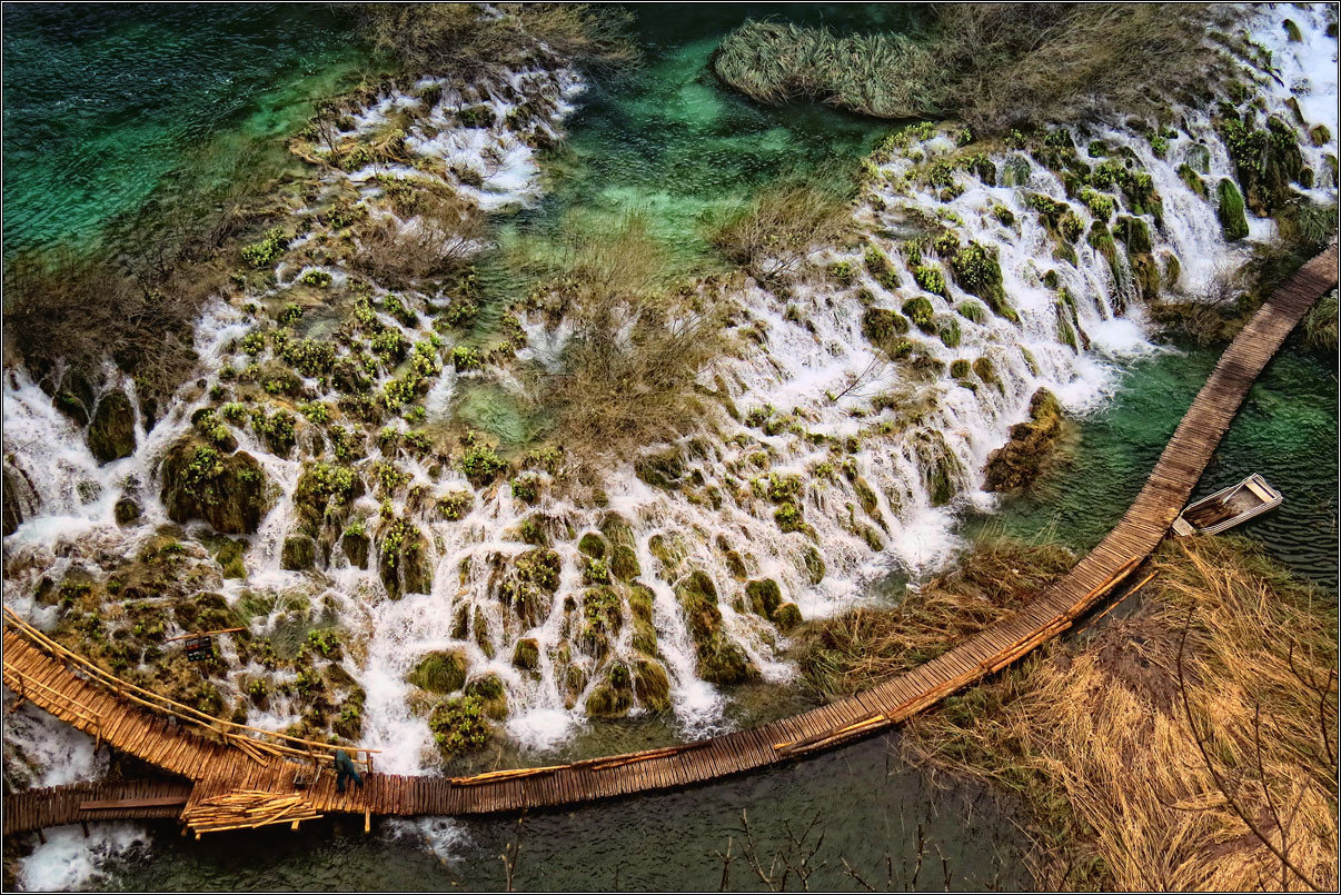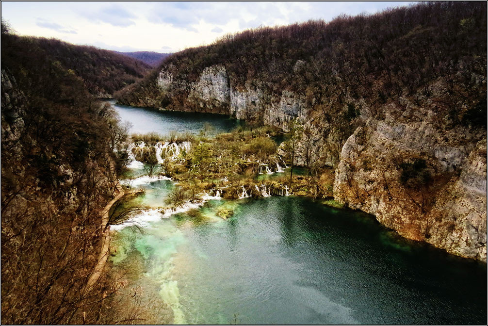 16 плитвицких озер последовательно перетекают одно в другое, и между каждыми двумя — своя цепь водопадов. Поэтому выбор здесь огромный, на любой вкус, и в некоторых местах, признаюсь, мы оба стояли с раскрытыми ртами, не представляя, как такое возможно вживую.