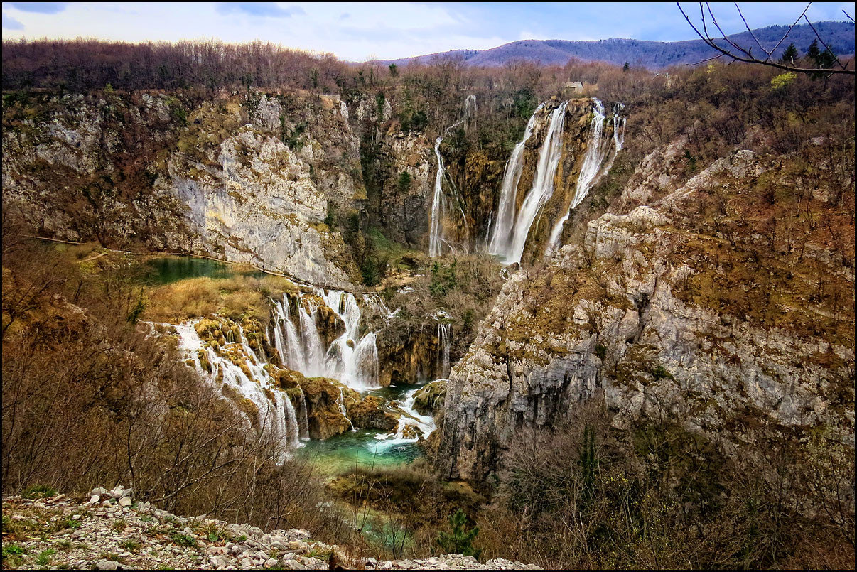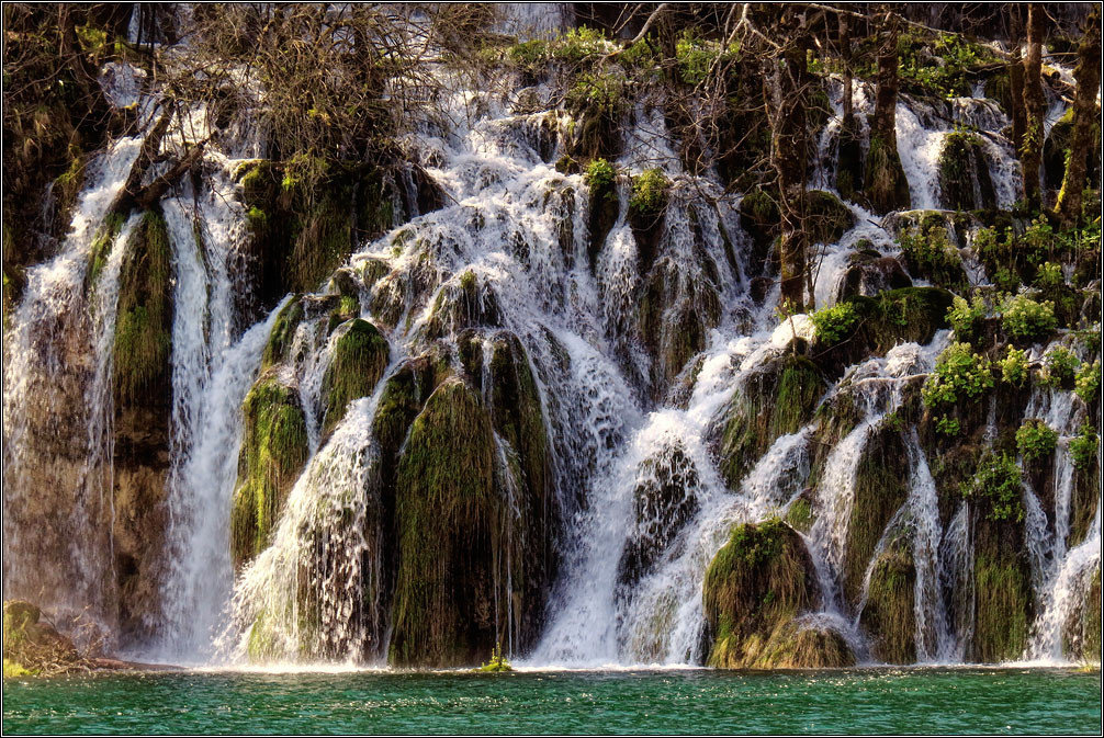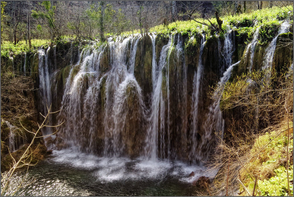Но когда мы пришли на верхние озера Плитвицкого парка, мы поняли, что до этого не видели водопадов вообще. Потому что здесь не просто водопад, здесь тысячи водопадов, высоких и низких, широких и узких, здесь можно увидеть сразу четыре каскада, разделенных озерами, можно стоять, задрав голову, и смотреть на 80-метровый Veliki slap, а можно подняться на гору и смотреть на него сверху вниз. Здесь порой совершенно непонятно, как это фотографировать, потому что ты стоишь на мостике, тебя окружают водопады со всех сторон, мало того, у тебя под ногами — тоже водопады, и тоже на пол-горизонта.
