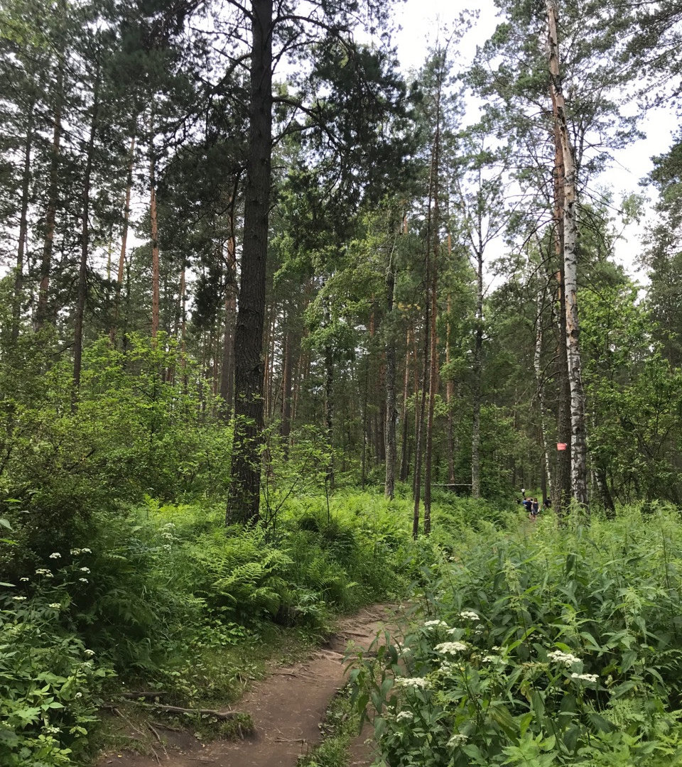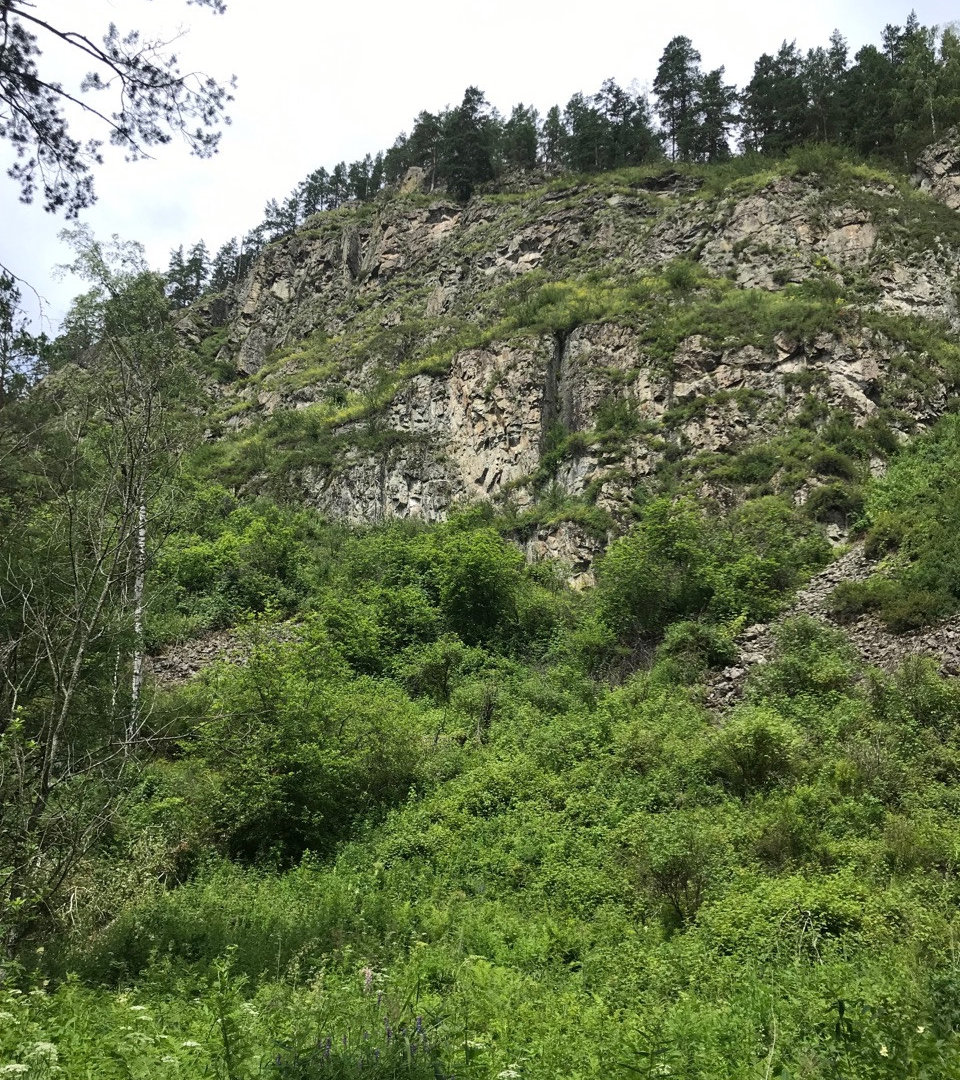 Благополучно перейдя реку, мы оказываемся на левом берегу Катуни и идем по тропе, следуя указателю. Идти приходится долго, успеваем устать. Благо с погодой нам повезло — не было палящего солнца, дул легкий ветерок, а от лесных зарослей исходила влажная ароматная прохлада.