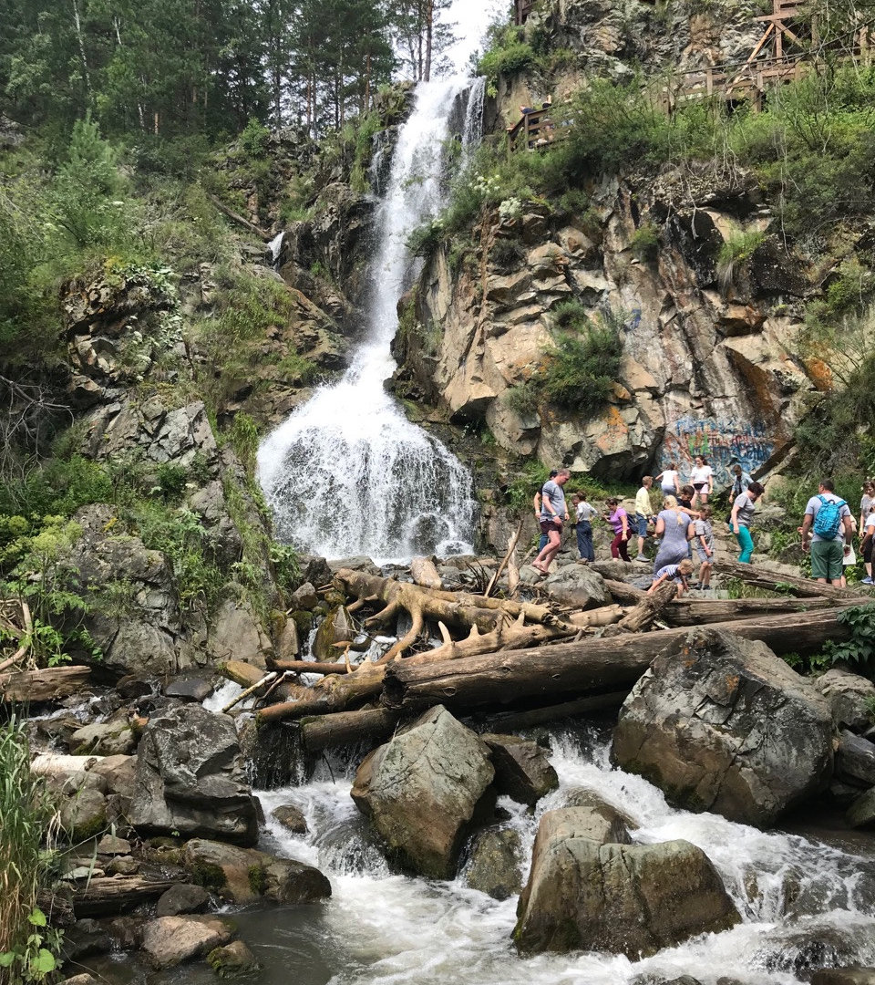 Путешествующим на Алтай по дороге встречается масса достопримечательностей, посетить которые можно без ущерба для своего времени. И одно из таких мест — Камышлинский водопад. К нему можно добраться двумя путями — пешком или по воде. Мы предпочли замечательную пешую прогулку и ничуть не пожалели.