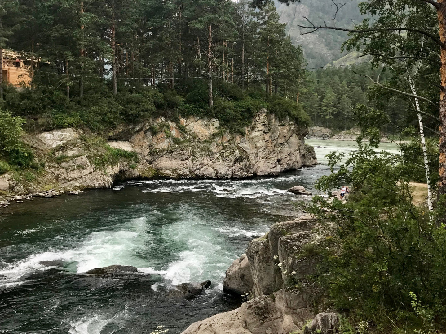 От рукотворных храмов мы передвигаемся к природным — по тропе, называемой козьей, поднимаемся на скалу по берегу Катуни. Красоты открываются сказочные!