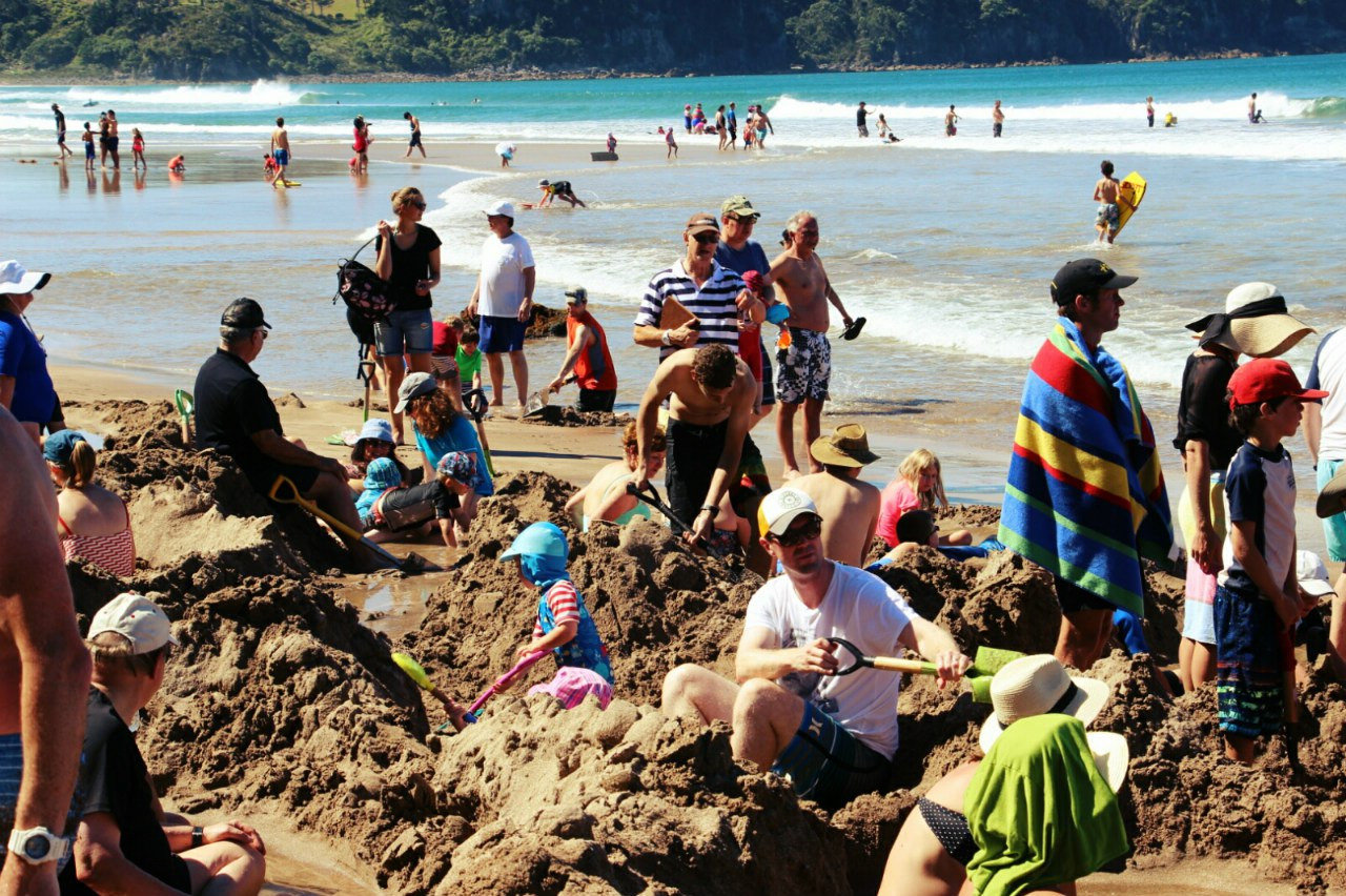 В горячем песке греются люди и варятся яйца. Новая Зеландия. Хахей