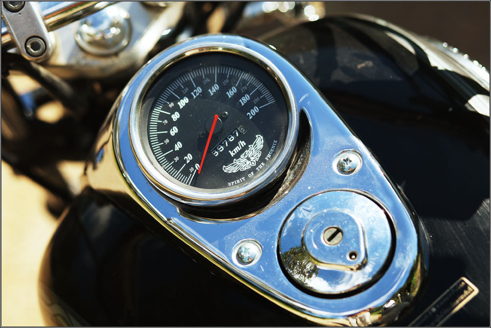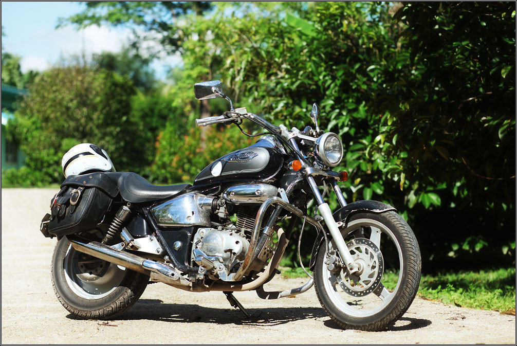 Выглядит мотоцикл совершенно как классический круизер типа Honda Steed/Shadow, только одного цилиндра и одной хромированной трубы не хватает. На ходу, кстати, это чувствуется примерно так же: вроде ты на большом мощном байке, даже звучит как настоящий, только почему-то не особо едет — явно кто-то спер один цилиндр ;)