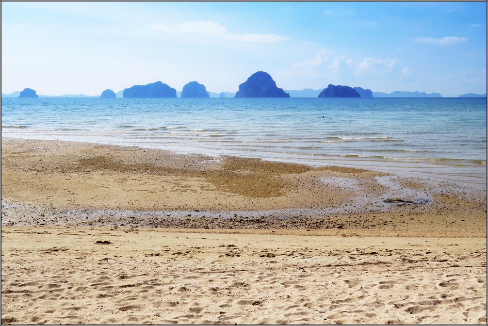 На полуострове Рэйли, куда надо ездить на лодке с Ао Нанга за 200 бат туда-обратно — несколько пляжей. Все довольно красивые, но людьми все заполнены так, что по берегу идешь, словно по метро в час пик. Острова нацпарков я сейчас в расчет не беру, туда каждый день ездить — разоришься, поскольку лодка стоит 2200 бат, да еще 300-400 бат с носа составляет государственный сбор за посещение. Есть и еще несколько пляжей: Туб Каек — чуть дальше Клонг Муанга, Нопарраттара — примыкает к Ао Нангу, и т.д, но они все довольно мелкие, даже в прилив, и купаться там проблематично. Но в целом, выбор тут есть, море везде чистое, так что с пляжным отдыхом никаких проблем :)