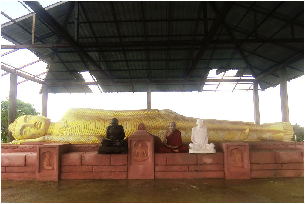 Если поехать еще выше — попадаешь к очередной новодельной достопримечательности в процессе строительства. Причем там прямо все: обычный Будда, лежащий Будда, маленькие Будды, сушеный монах в нескольких вариантах, лубочно-розовый Ганеша, колокола висят, статуи зверей стоят рядами, и еще какие-то монументы достраиваются.