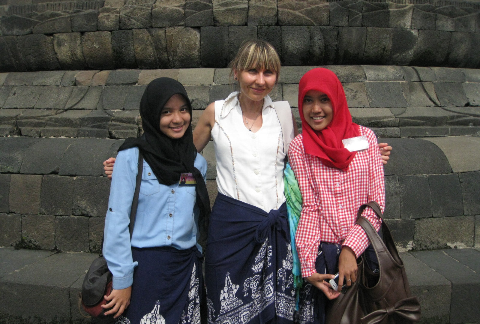 В самом центре верхнего яруса установлена Главная ступа. Но она уже без отверстий. Под ней сидит Будда, достигший просветления. Для сбычи мечт нужно обойти Главную ступу несколько раз и в это время загадывать желания! Что я и сделала!:) А потом набежала мусульманская молодёжь и некоторые попросили меня сфотографироваться с ними. Ну, я и «поработала обезьянкой», жалко мне, что ли:)