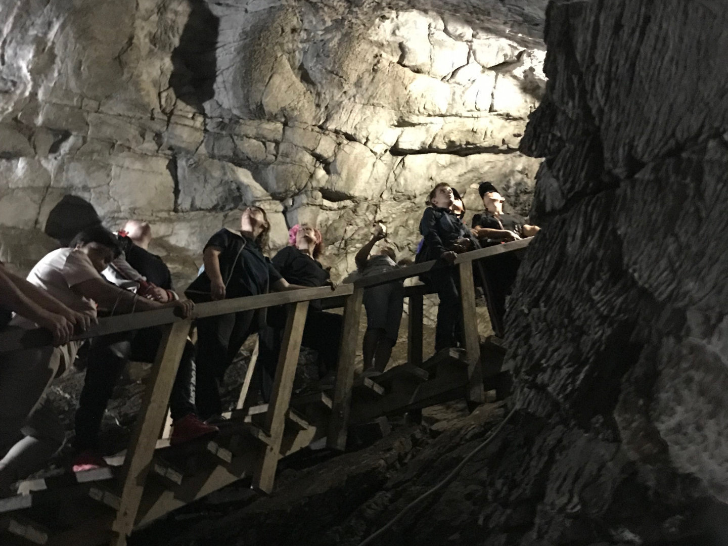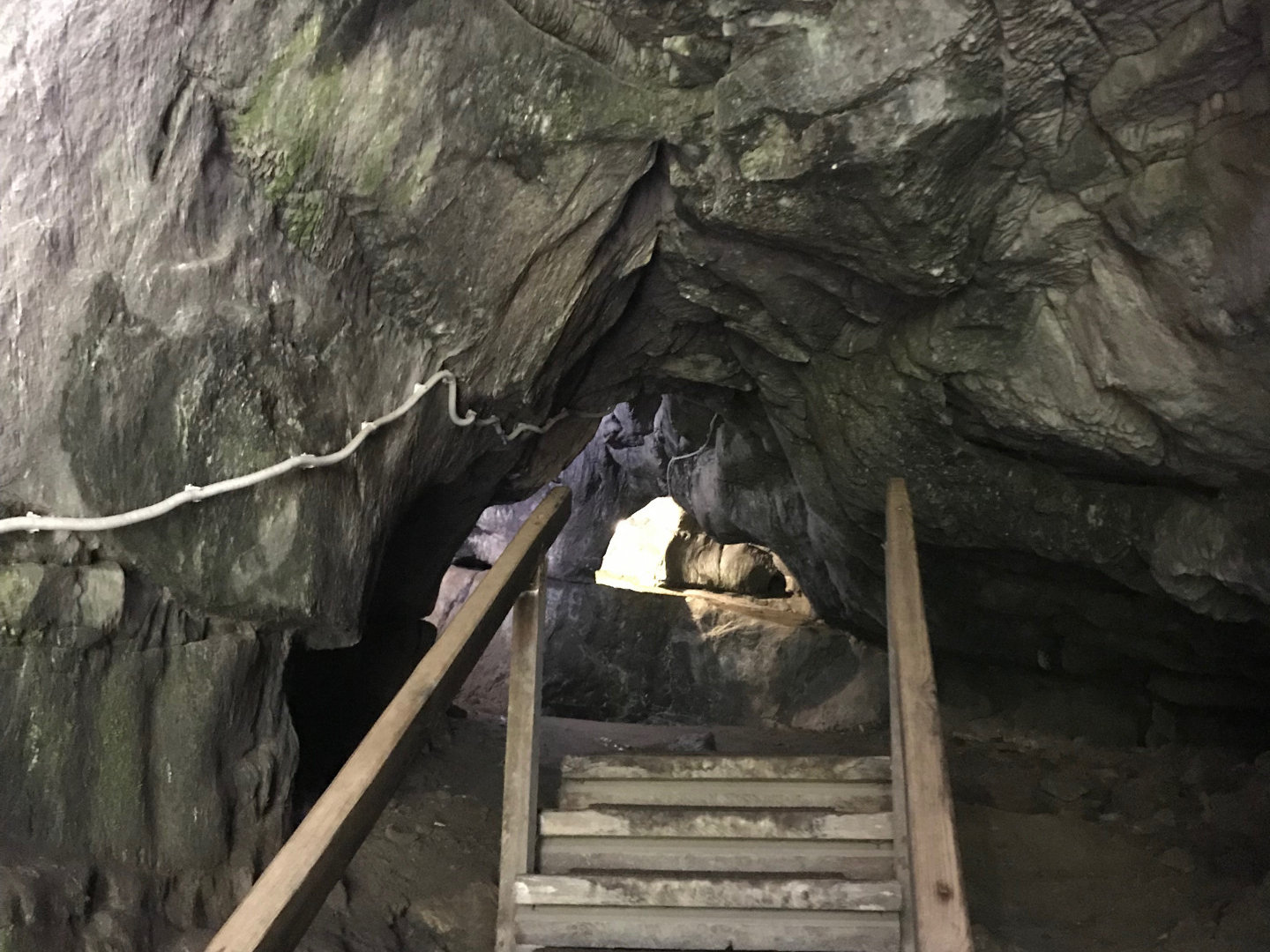 Подъем к входу в пещеру высотой в три этажа мы преодолели по ступенькам. Надо сказать, что и в самой пещере организовано все цивилизованно — удобные лестницы, канаты и поручни, освещение — все это здесь существует уже несколько лет.